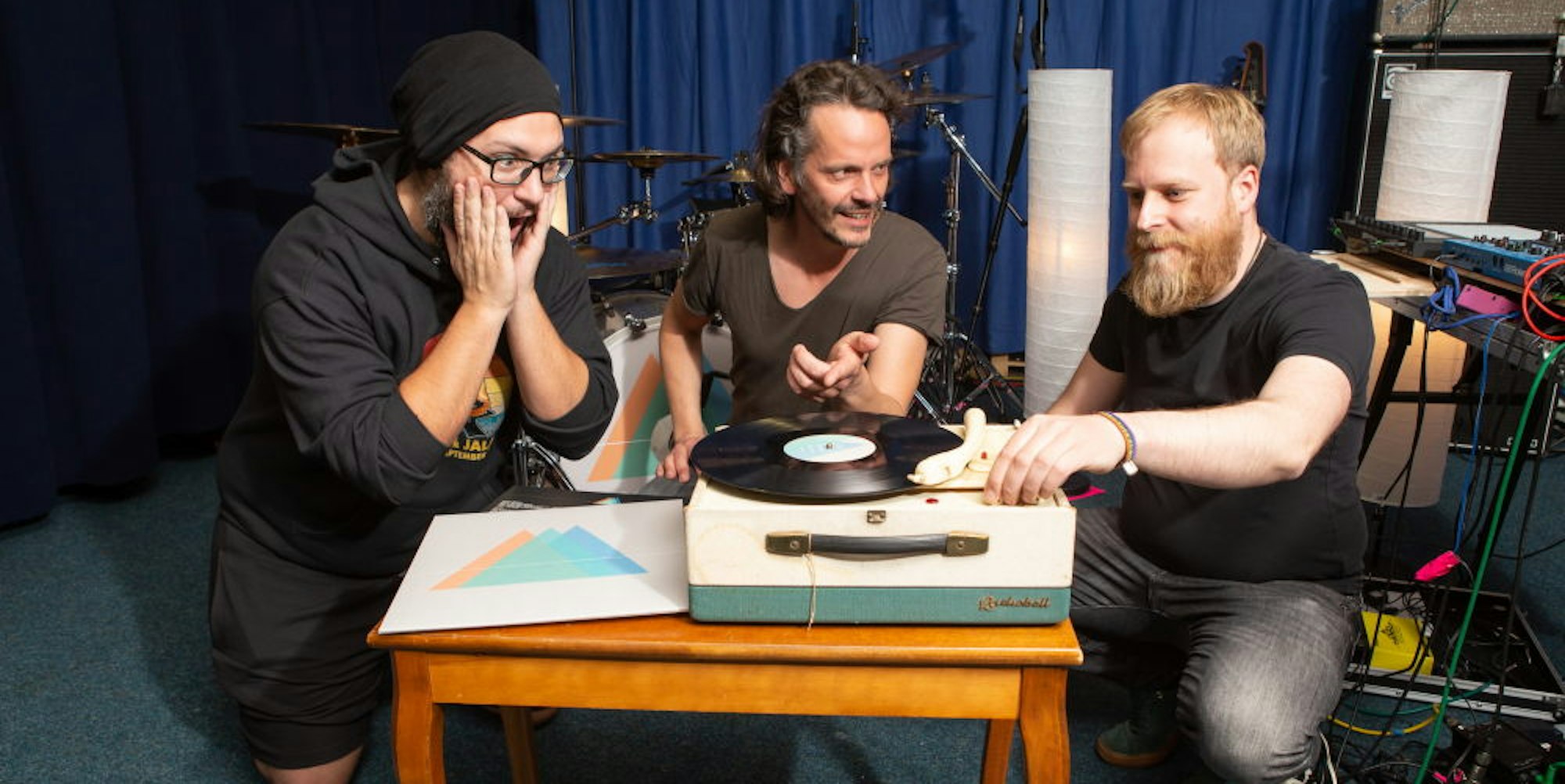 Und als die fertigen Exemplare eintrafen, sagt Dominik Mertens, hätten alle drei den Augenblick regelrecht ausgekostet: „Ein fertiges Album vor sich zu haben, in das man so viel Arbeit gesteckt hat, ist ein unbeschreibliches Gefühl.“ Lars Dreier sagt, dass es wunderbar analog war, die Platte aus der Hülle zu ziehen. „Das erste Knistern, wenn die Nadel aufgesetzt wird, entschleunigt schon total. Es ist eine andere Art des Musikhörens.“