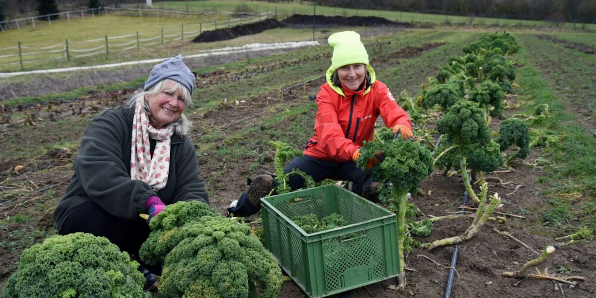 Der Grünkohl, den Beate Hanke-Kobler (r.) und Angelika Thiele (l.) ernten, schmeckt nach dem ersten Frost besonders gut.