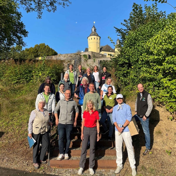 Auf eigener Adler-Achse aber ist der im belgischen Brüssel lebende Jürgen Köppen angereist, mit seinem „Trumpf Junior“ aus dem Jahr 1936. Einen ähnlich langen Weg haben Wim Sijwers und Rein van der Mast aus den Niederlanden. Der Präsident und der 1. Sekretär des holländischen Adler-Clubs haben ihren Trump, Baujahr 1933, auf dem Anhänger mitgebracht, um in Oberberg mit Gleichgesinnten die Ausfahrten zu unternehmen. Nach einem Stopp am Samstag im Naturerlebnispark Panarbora bei Waldbröl, einer Fahrt zur Fruchtsaftkelterei Weber in Nümbrecht-Lindscheid geht es zurück über Holsteins Mühle zurück ins Hotel zur Post nach Wiehl. Am Sonntag fahren die Automobilliebhaber das Nümbrechter Schloss Homburg an – und wieder kommen viele Schaulustige, diesmal um historische Autos und Gemäuer zusammen auf ein Foto zu bannen.