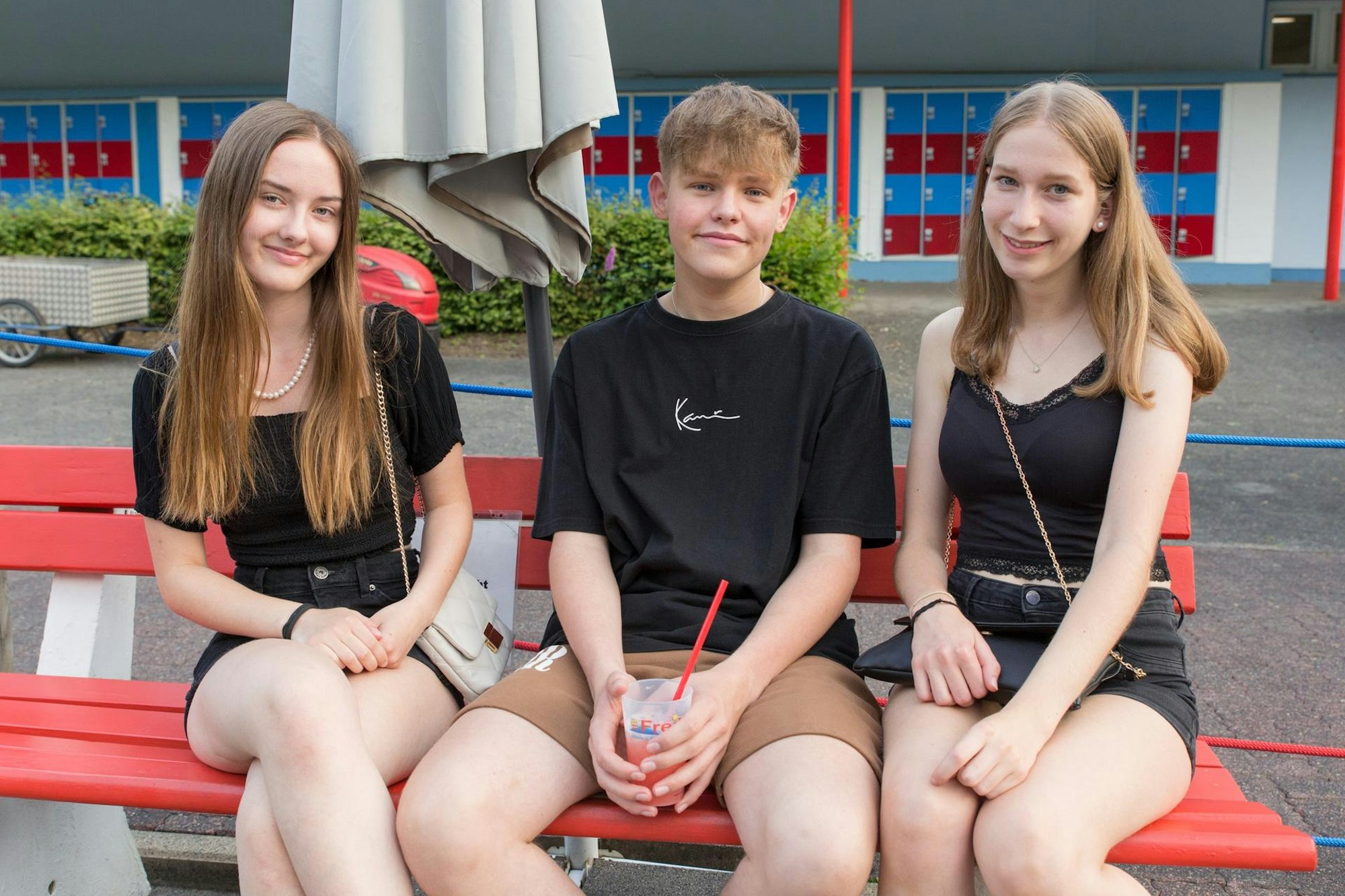 Sie gehen gern ins Freibad – auch, um sich dort zu treffen: Lena (v.l.), Max und Celina genießen diesmal den Abend bei der Late-Night-Party.