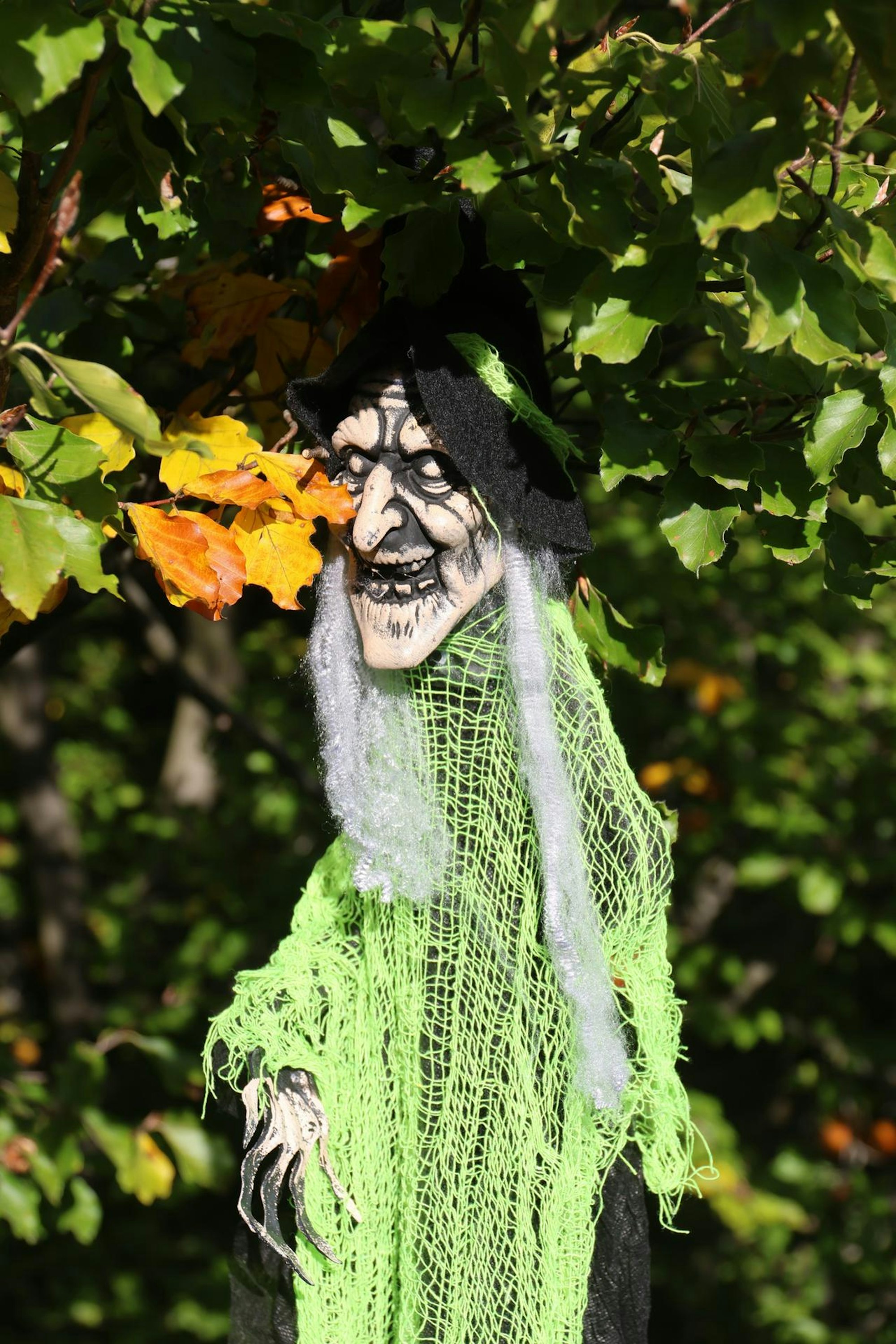 Nach dem Durchschreiten eines dunklen Tores säumen Spinnen und unzählige Gespenster den Baumwipfelpfad – unterwegs geköpfte Jungfrauen und besenreitende Hexen, die sich verflogen haben und an einen Baumstamm geprallt sind. Von oben winden sich schwarze, schlangenähnliche Gebilde herab, denen die Besucher ausweichen müssen, überall spannen sich Spinnennetze.