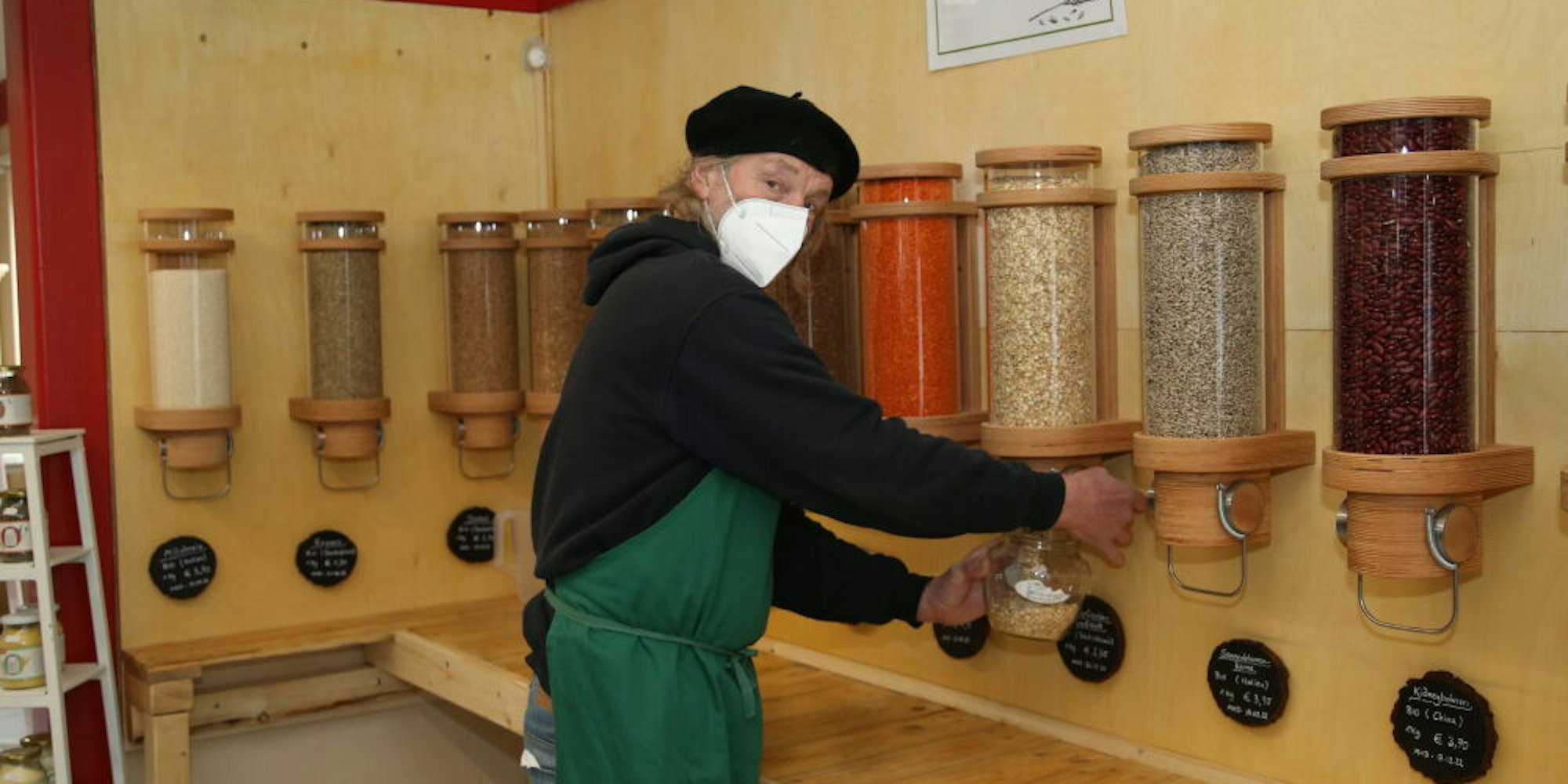 Nach einem vom Gesundheitsamt genehmigten Konzept sollen Kunden ihre eigenen Behältnisse mitbringen. Diese werden zuvor gewogen und das Gewicht wird nachher an der Kasse wieder abgezogen. Teilweise gibt es Pfandgläser oder Papiertüten. Coronabedingt werden die Waren derzeit von Bediensteten abgefüllt, später soll auch Selbstbedienung möglich sein. Die Haltbarkeit ist auf einem Schildchen unterhalb etwa der Bins, wie die Getreidesilos genannt werden, angegeben und ist vergleichbar mit verpackten Lebensmitteln.