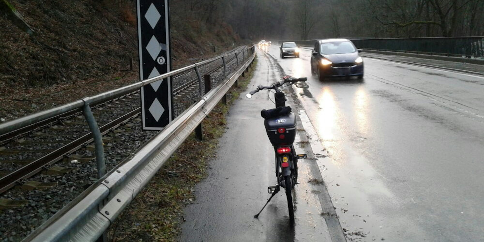 Kein Vergnügen: Radeln dicht neben einer Bundesstraße.
