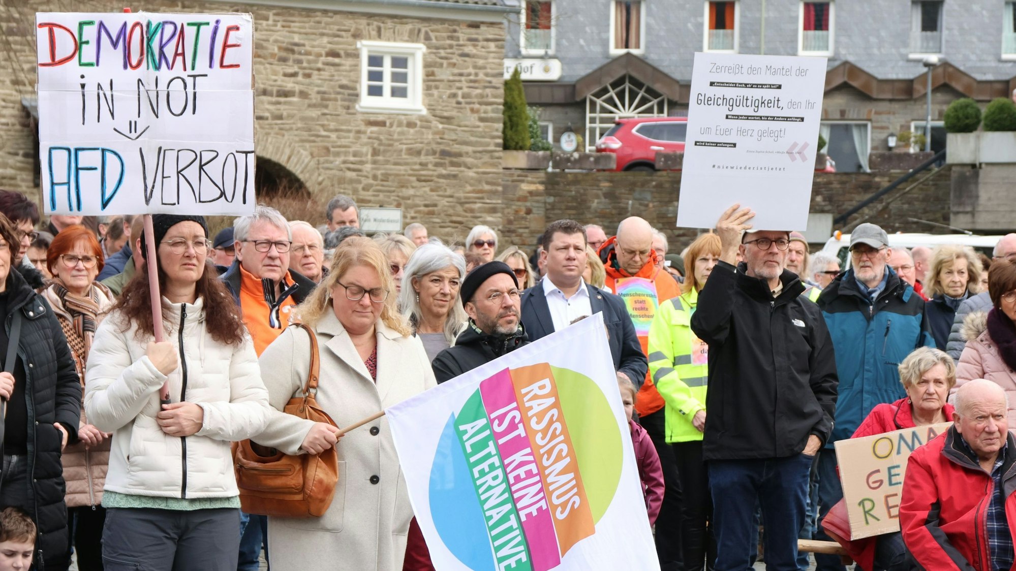 Zur Begrüßung der rund 250 Teilnehmer der zentralen Reichshofer Kundgebung für Demokratie und Vielfalt sagte Gerhard Jenders von der Initiative „Unser Oberberg ist bunt, nicht braun“ in diesem Sinne: „Es gibt viele, die die Demokratie befürworten – wir müssen aber auch dafür kämpfen.“ Jenders hatte die Veranstaltung gemeinsam mit der Gemeinde und den Reichshofer Ratsfraktionen unter Federführung von Susanne Maaß (SPD) parteiübergreifend organisiert.