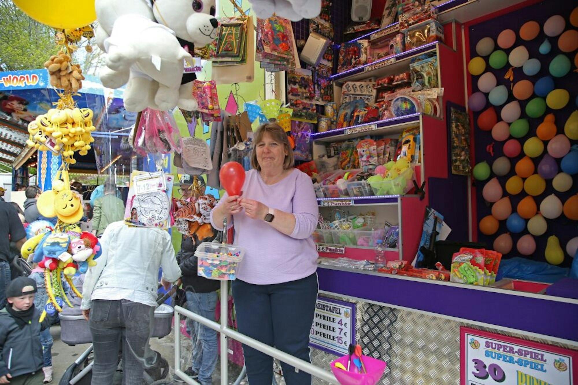 Maria Müller, Inhaberin des Pfeilewerfen-Standes.