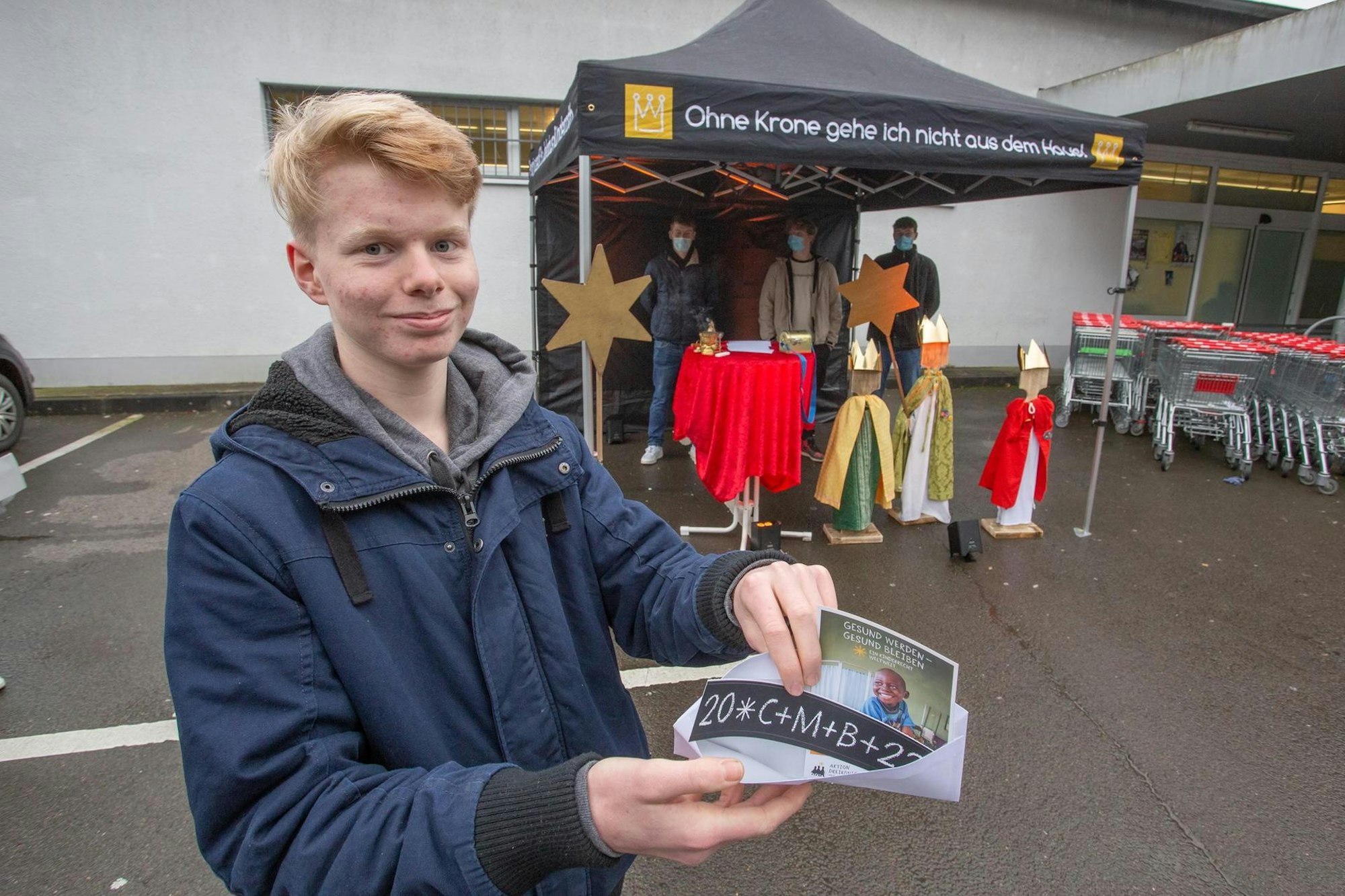 Ründeroth – Kaum haben die Jugendleiter der Pfarrjugend St. Jakobus Ründeroth ihren Sternsinger-Pavillon auf dem Rewe-Parkplatz in Ründeroth aufgebaut, schon kommen zahlreiche Menschen an den Stand, um für die Dreikönigsaktion zu spenden und um sich eines der heiß begehrten Segenspakete abzuholen, das die Jugendlichen vorab gepackt haben. Denn wegen der anhaltenden Corona-Pandemie und weil es in der Ründerother Pfarrjugend derzeit an Betreuern fehlt, war es auch in diesem Jahr nicht möglich, mit den Sternsingern wie gewohnt von Haustür zu Haustür zu gehen, um den Segen persönlich zu bringen.