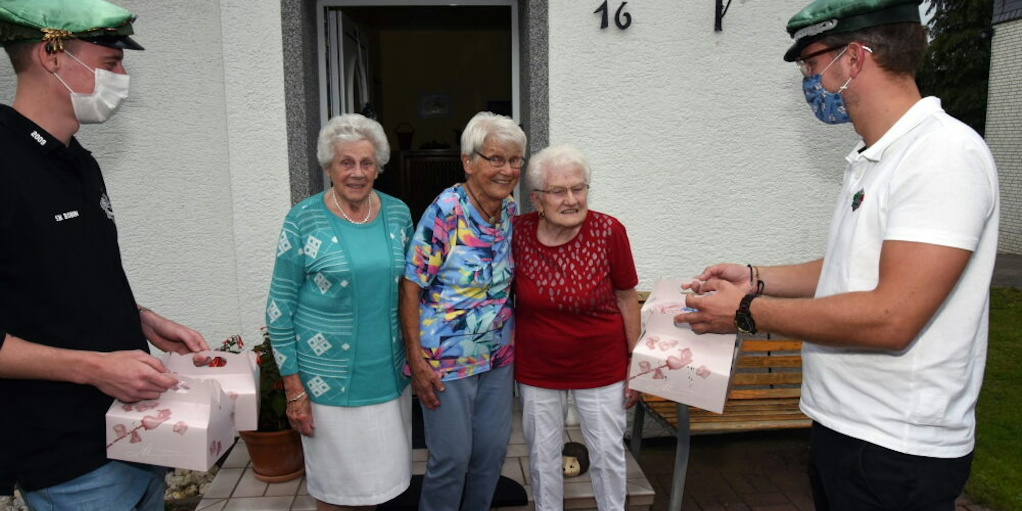 Charlotte Schenk, Grete Bahs und Margot Hevendehl aus der Straße „Zu den Rödelteichen“ freuten sich riesig über die Aufmerksamkeit. „Eine schöne Geste seitens der Schützen, wir haben das mit den Kuchengeschenken als sehr schön empfunden“, waren sich die Frauen einig.