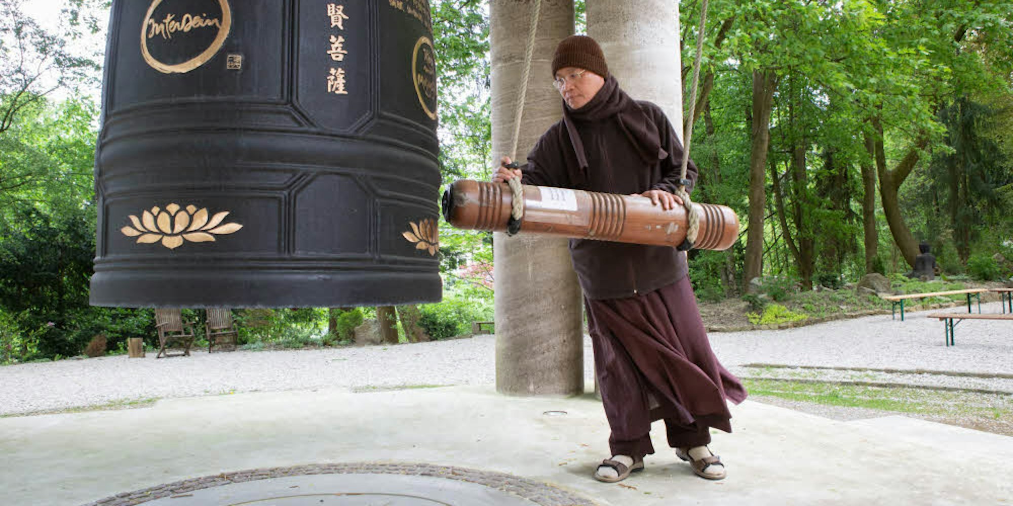 800 Kilogramm schwer ist die Glocke, die Abt Thay Phap An zu besonderen Anlässen anschlägt.
