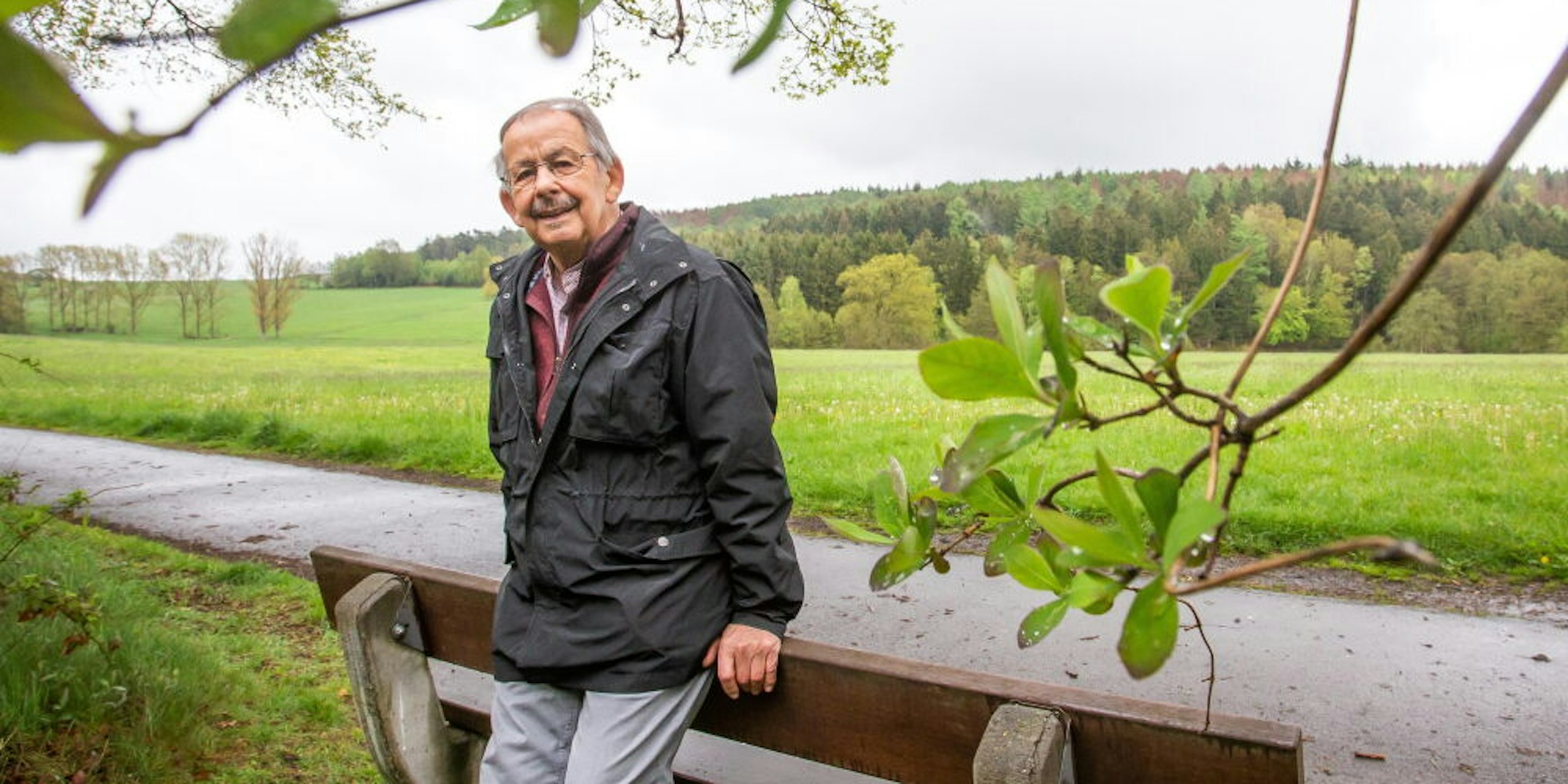 Oedinghausen – Noch wenige Minuten vor dem Fototermin an der Sitzbank in Nümbrecht-Oedinghausen, hatte Wilfried Großberndt davon berichtet, dass er an diesem Weg immer Rehe beobachtet. Und wirklich, ein Stück entfernt grasen fünf Rehe, während der 83-Jährige fotografiert wird.