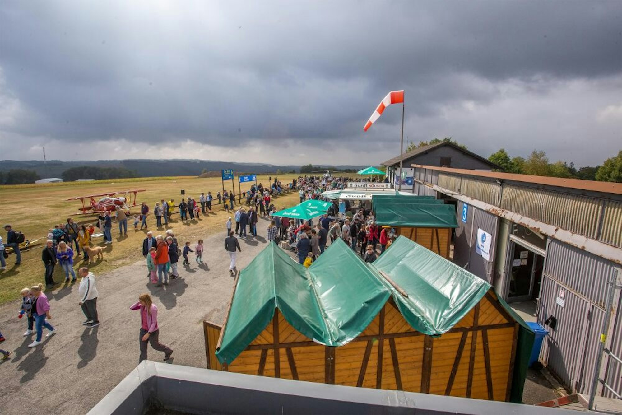 Dennoch kamen einige Hundert Gäste auf ihre Kosten. In den Hangars waren Segelflugzeuge ausgestellt und Großmodelle, etwa Starfighter, Concorde oder eine Blériot XI, mit der einst der Luftfahrtpionier Louis Blériot als erster Mensch den Ärmelkanal in einem Flugzeug überquerte. Zudem gab es ein riesiges Büfett – die rund 120 Vereinsmitglieder hatten rund 200 selbstgemachte Kuchen und Torten aufgefahren. Darüber hinaus gab es Waffeln und Pizza aus dem Steinofen. Schwitzend, mit leicht angesengten Haaren, aber schmunzelnd bekundete Frank Patt vom LSC, der sich als Bäcker betätigte: „Das ist die beste Pizza im Oberbergischen.“