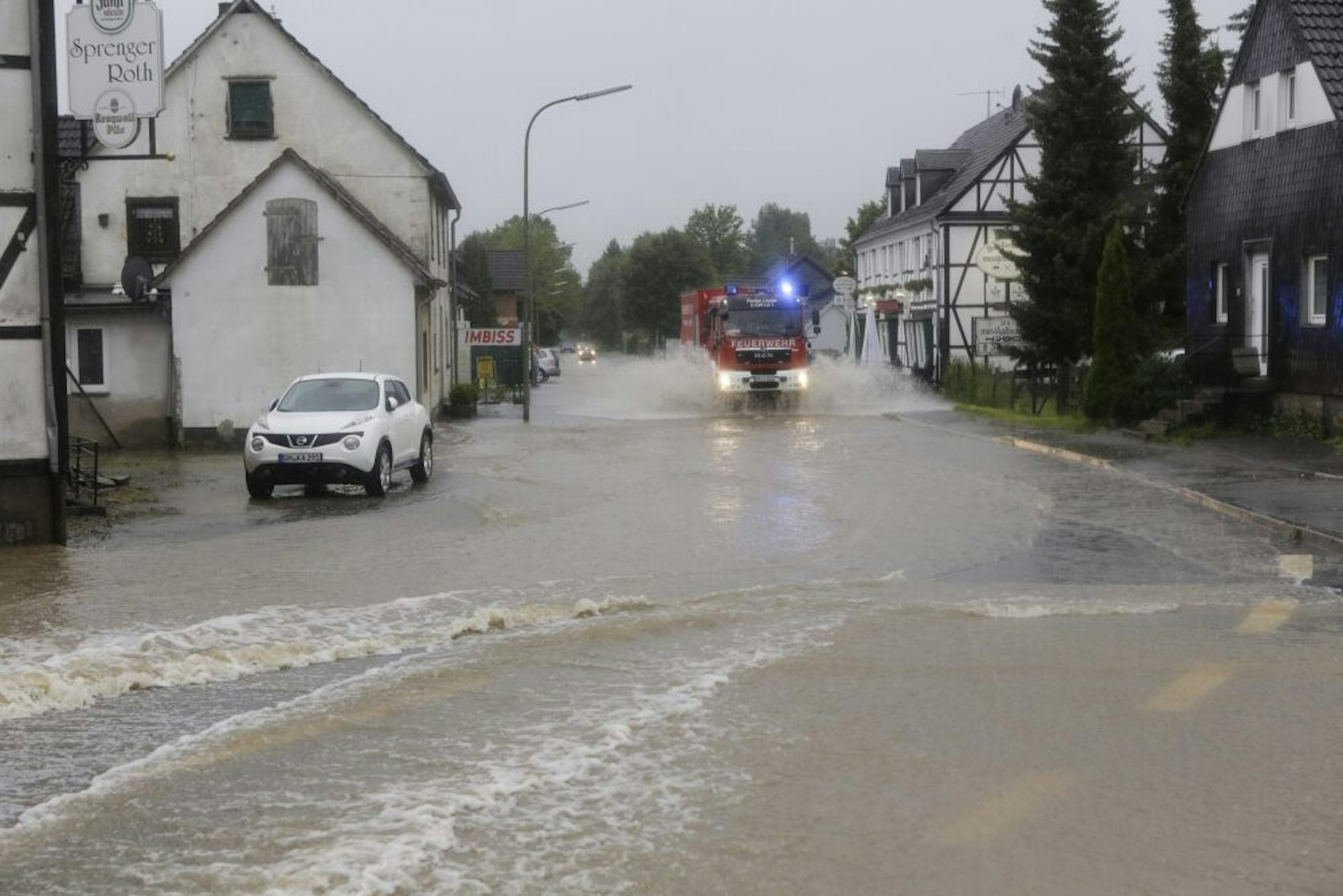 Die überflutete Sülztalstraße am Abend des 14. Juli in Hartegasse.