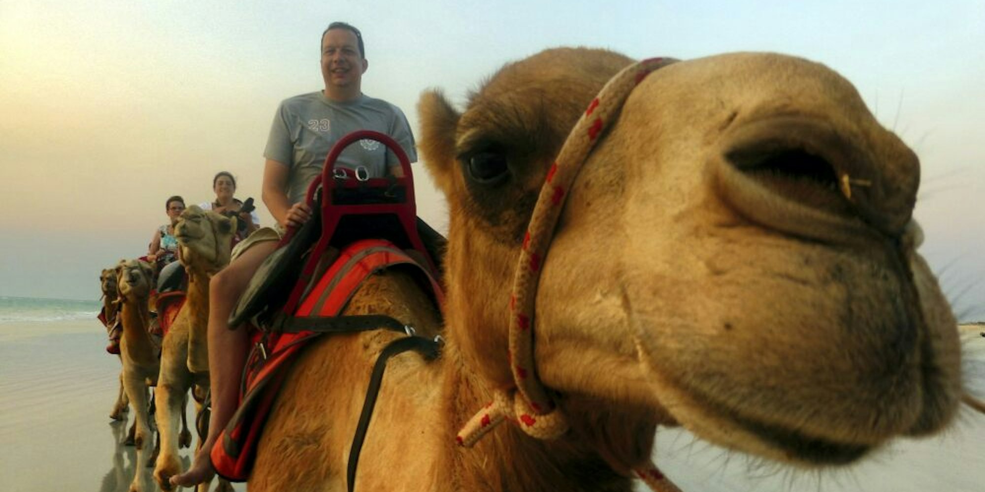 Nicht die drei Weisen aus dem Morgenland reiten hier auf Kamelen, sondern Frank Ochel und Begleiter in der australischen Wüste.