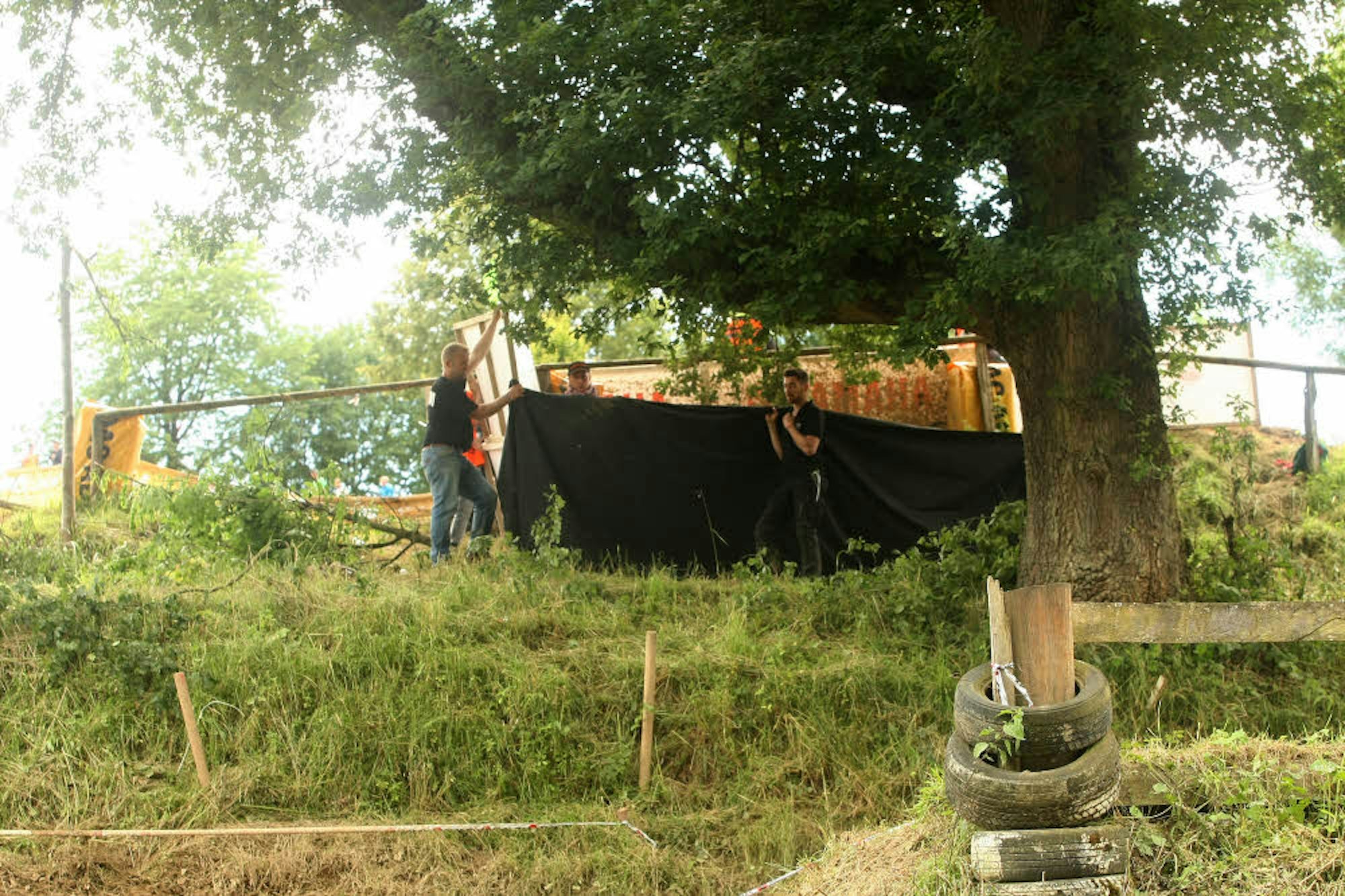 Nach ersten Erkenntnissen hatte sich der Gummersbacher, der mit seiner Familie als Besucher an der Strecke war, beim einsetzenden Regen unter die große Eiche geflüchtet, um sich vor der Nässe zu schützen. „Wir gehen davon aus, dass der Bereich Speerzone war“, so Rundschke. Das heißt, der Abschnitt war für Zuschauer verboten.