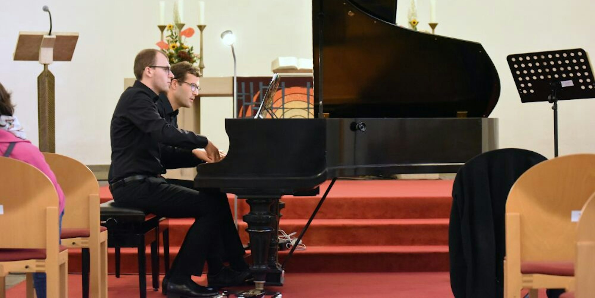 Waldbröl – Gut besucht war der Kammermusikabend der Evangelischen Kirchengemeinde, den Kantor Pascal Salzmann in der Stadtkirche mit Gästen gestaltete. Am frisch gestimmten Flügel musizierte er solo und mit Pianist Tobias Pfänder vierhändig. Anissa Albrecht ergänzte die beiden mit ihrem wunderbaren Klarinetten-Spiel.