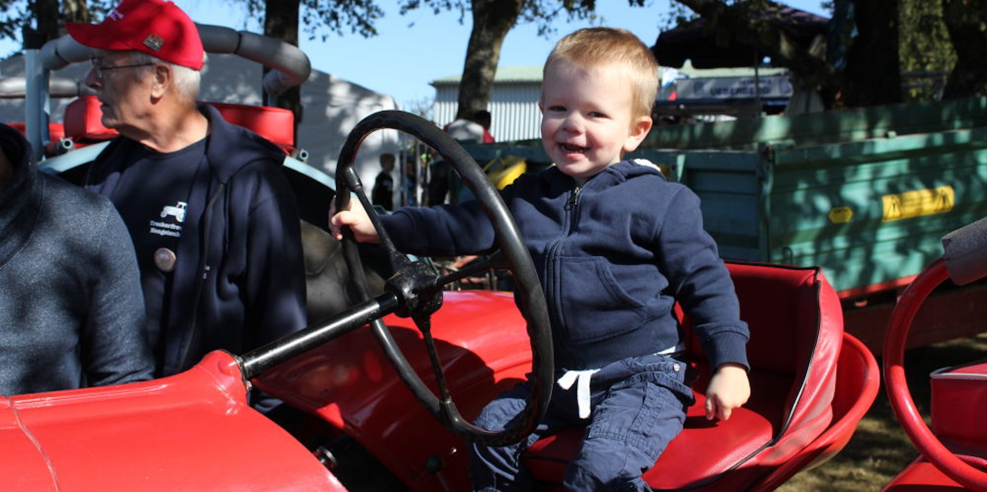 Junger Porsche-Fahrer: Der zweijährige Max durfte sich beim Treckertreffen hinter das Steuer des G218 Standard von Bernd Kinzelmann setzen. Der kleine Max liebt Trecker über alles.