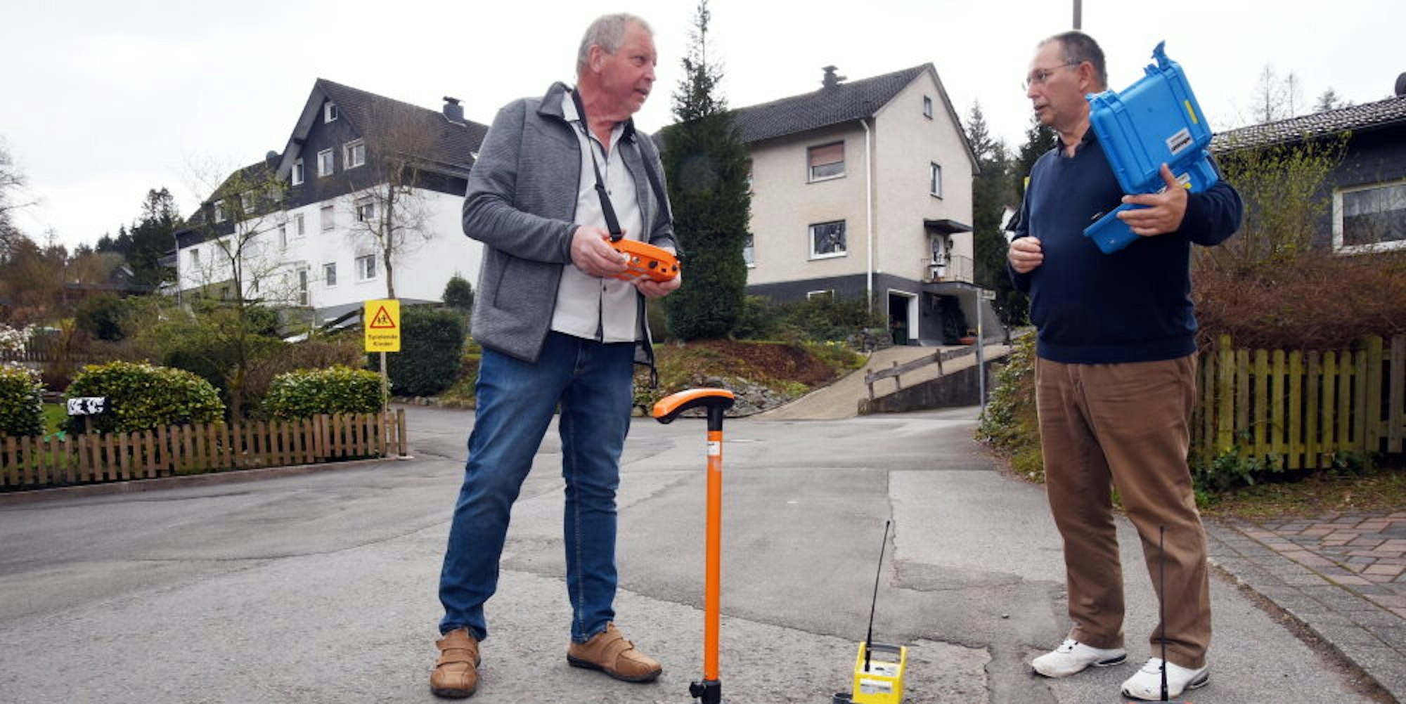 Wipperfürth-Ohl – Das Boden-Mikrofon, das Werner Leineweber gerade in Stellung bringt, erinnert ein wenig an die Ausrüstung eines Geheimagenten. „Schon mit dem alten Modell konnte man in Ohl hören, wenn in Marienheide der Bus losfährt“, erklärt Leineweber mit einem Augenzwinkern und setzt das orangefarbene Rohr mit dem Stockgriff auf den Asphalt.