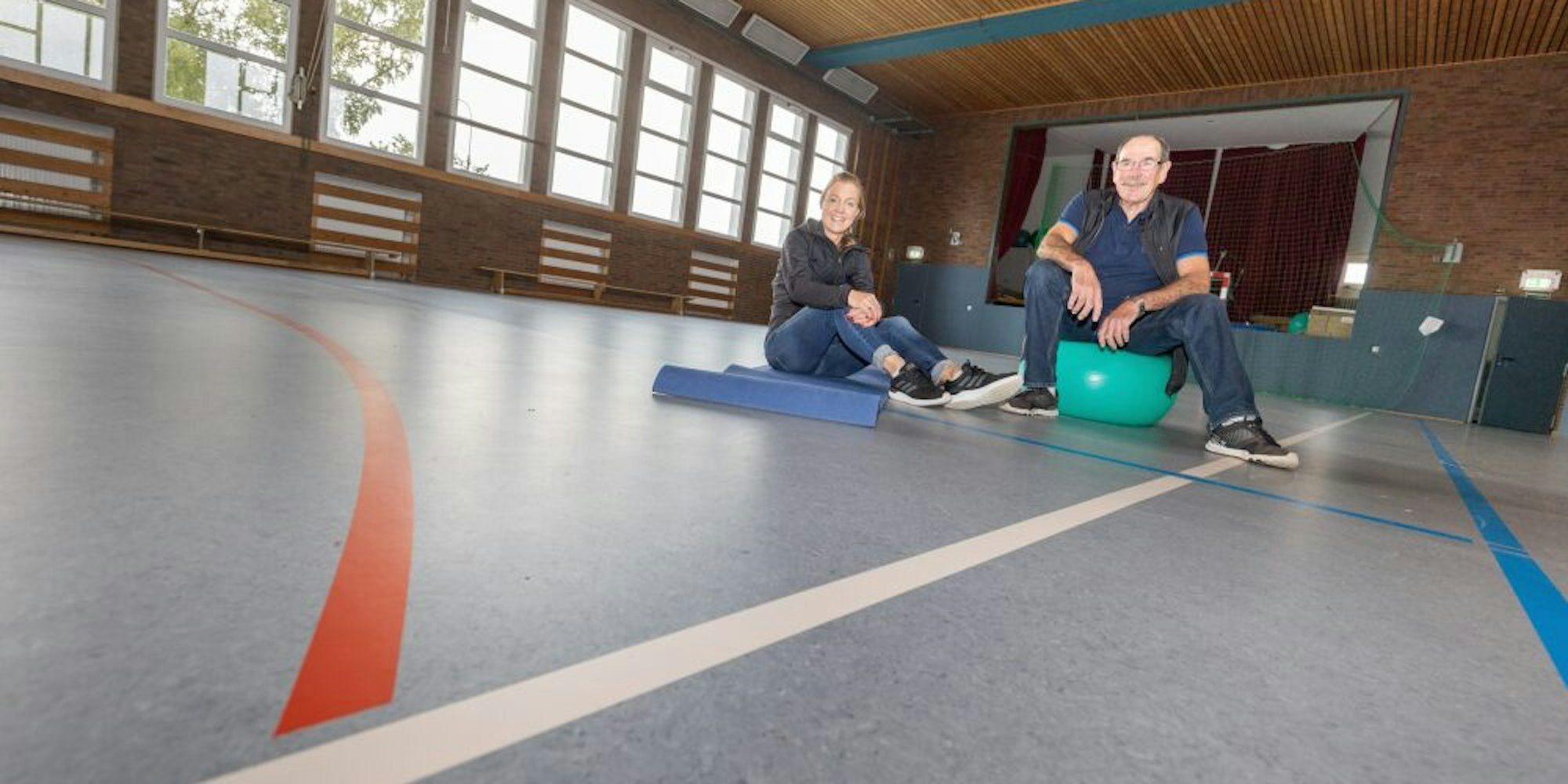 Der neue Hallenboden war einer der letzten großen Sanierungsschritte, berichten Svenja Massolle und Klaus Kuss.