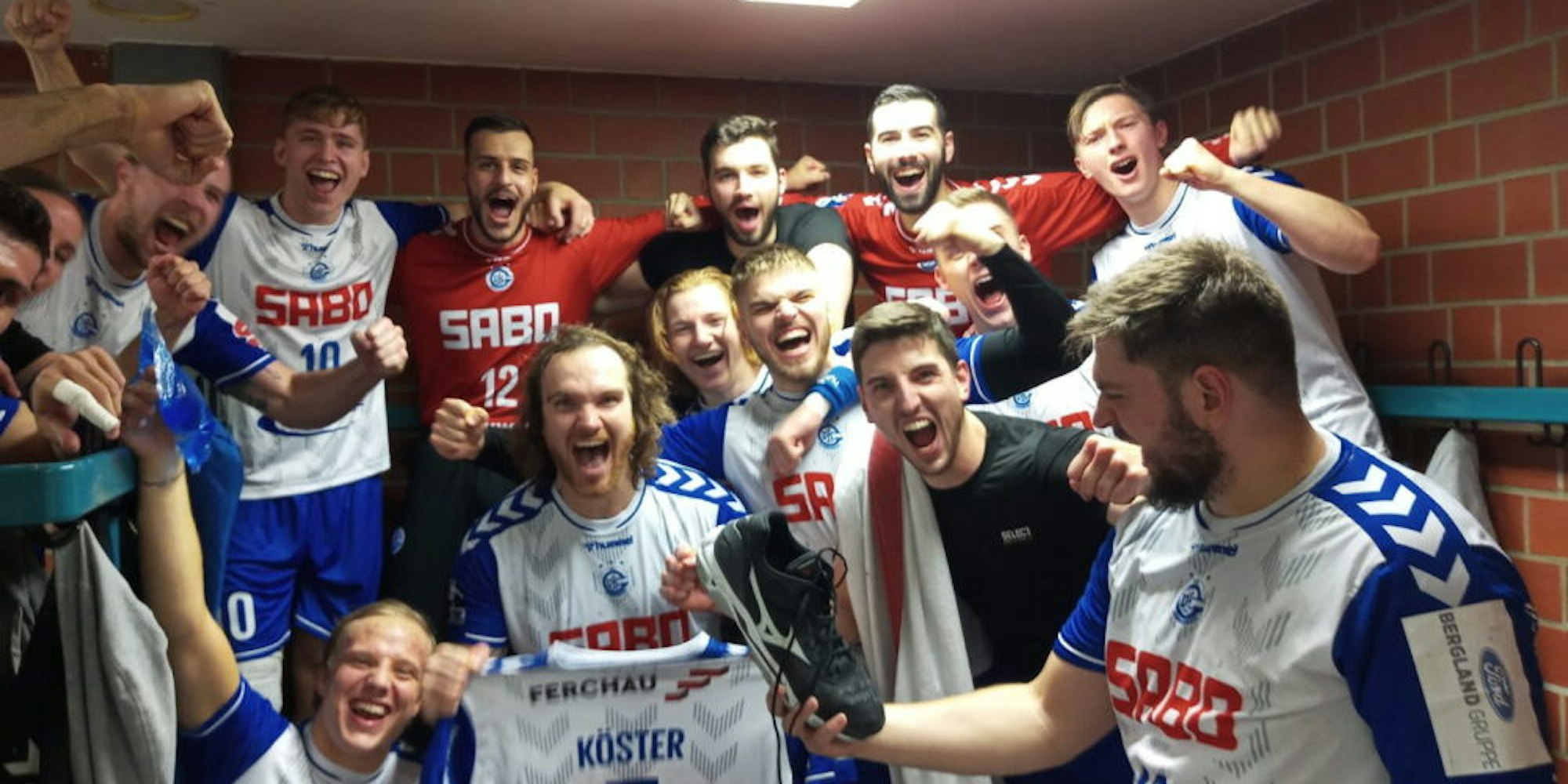 Nach dem Sieg in Emsdetten sandten die VfL-Spieler Grüße an Julian Köster.