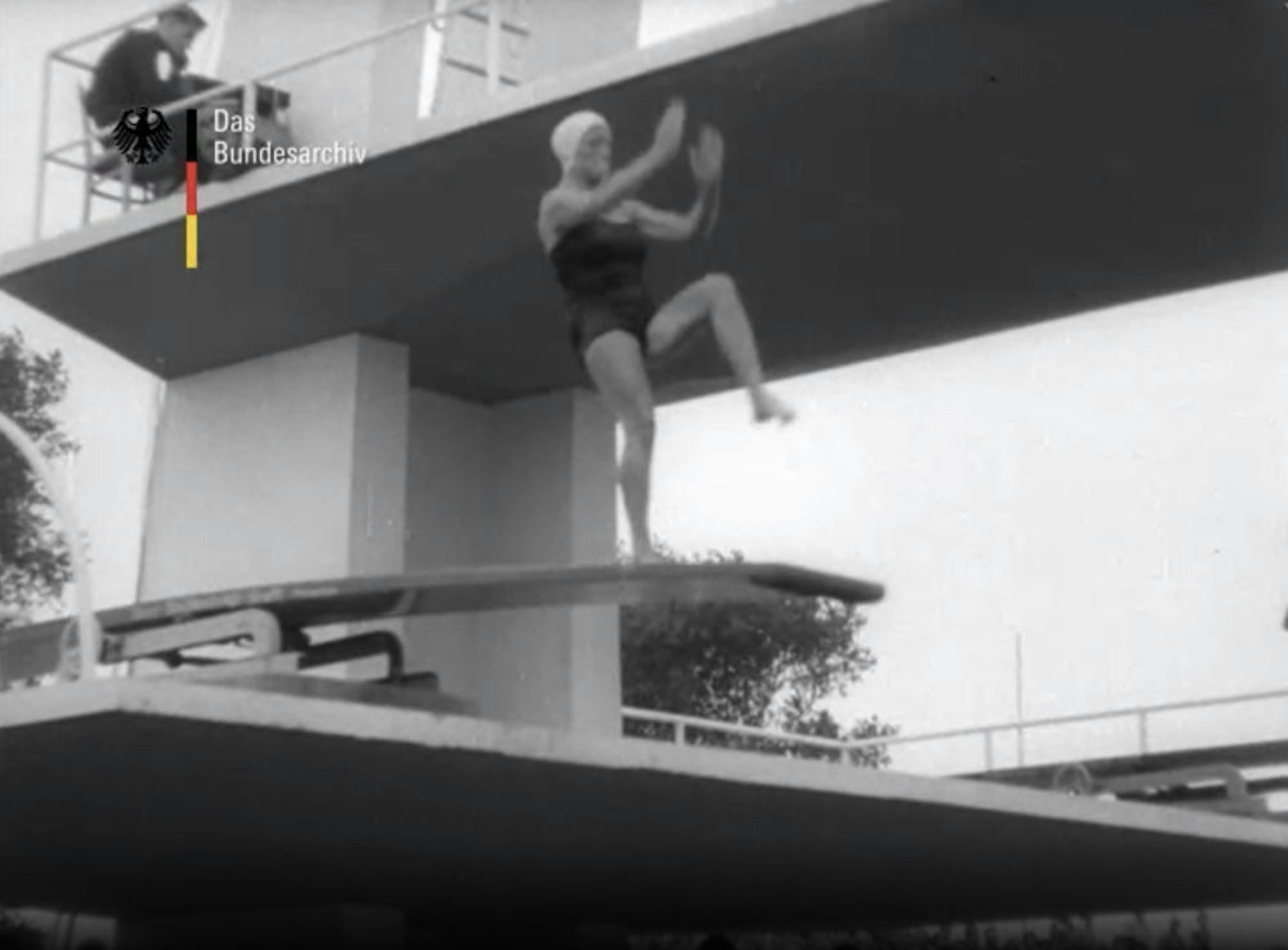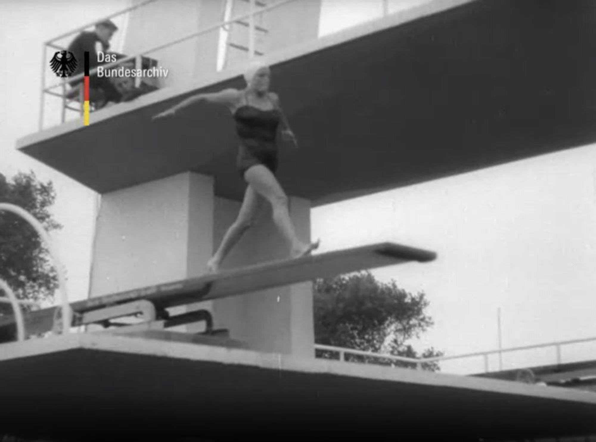 In den Jahren 1952 und ’53 wurde sie vom Zehn-Meter-Turm Deutsche Meisterin. Vom Drei-Meter-Brett gelang ihr dieses Kunststück von 1951 bis ’53 drei Mal in Folge. Sogar der deutschen Wochenschau waren die Erfolge der Gummersbacherin in diesen Jahren einen, wenn auch kleinen Bericht wert.