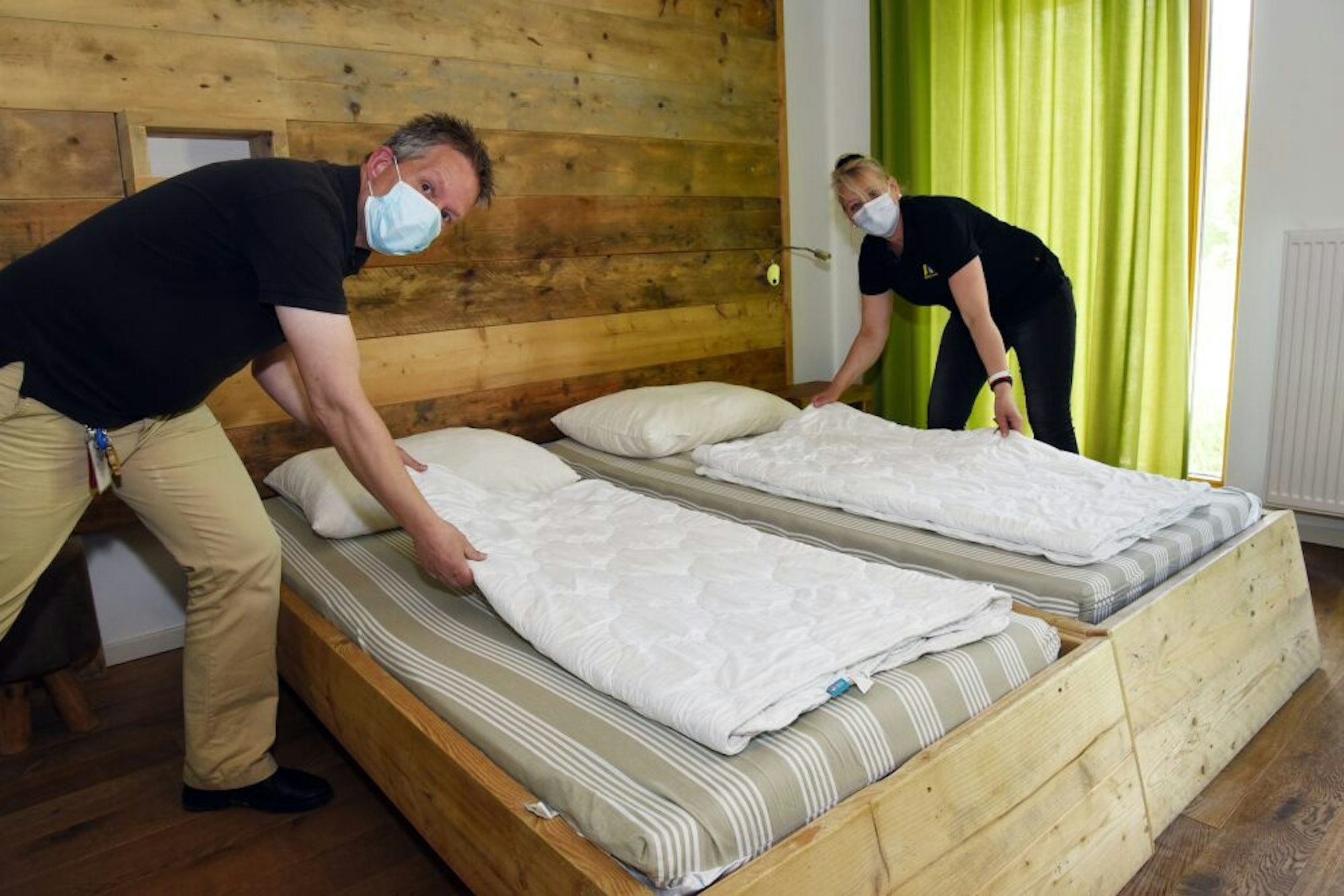 Patrick Mielke und Jovanka Takaj bereiten alles für die Übernachtungsgäste vor.