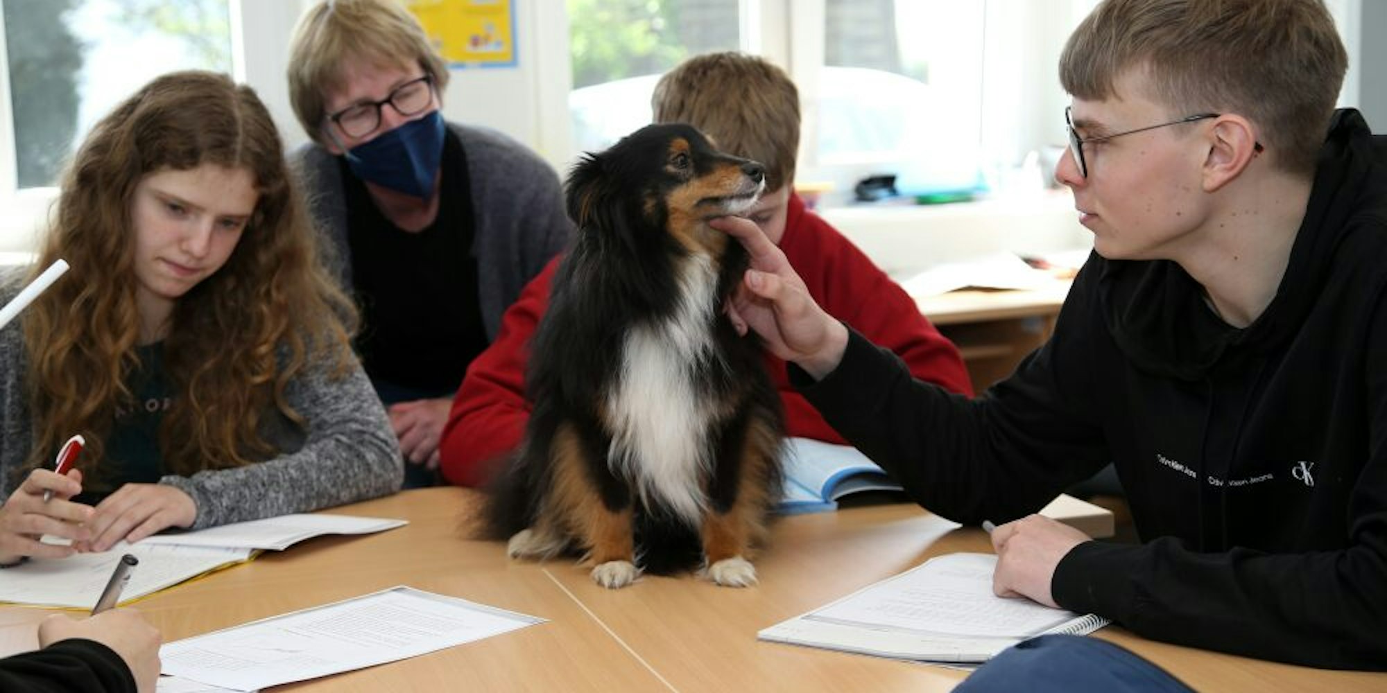 „Sie lockert insgesamt die Atmosphäre auf“, schildert Neuntklässler Nils, der zu den Streitschlichtern gehört. Und seine Lehrerin ergänzt lachend: „Für Tilda arbeiten alle viel lieber als für uns Mitglieder des Kollegiums. Eine mir häufig gestellte Frage ist, ob Tilda morgen wieder mitkommt.“ Der kleine Vierbeiner ist übrigens für die Jugendlichen auch „buchbar“: Die Liste, die Hündin in der Pause beschmusen zu dürfen, fülle sich immer schnell, verrät Nicole Treunowski. Sie weiß, dass Tilda es auch mag, wenn ihr vorgelesen wird.