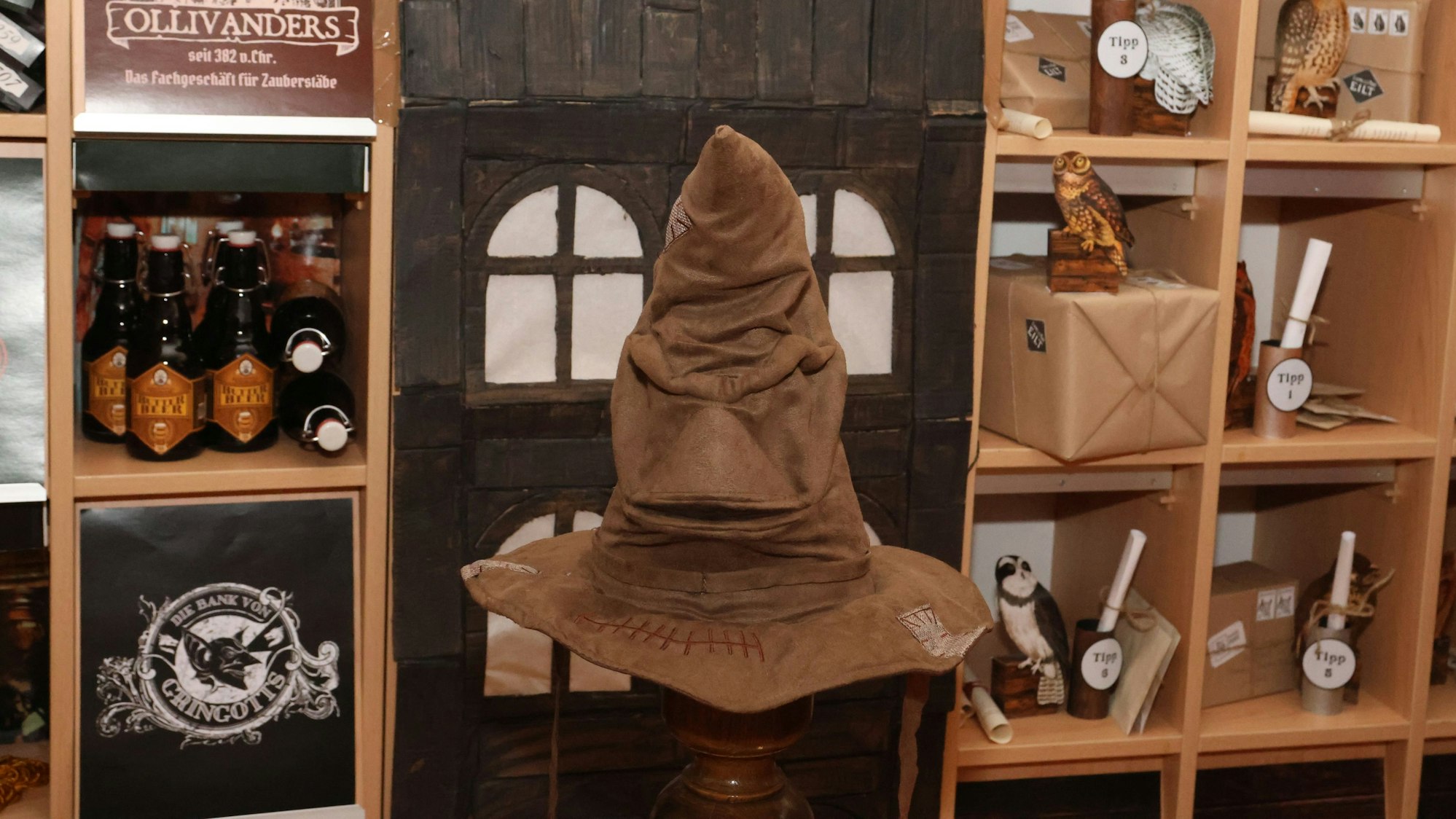 Dafür hat das Büchereiteam Jaqueline Gomer und Carolin Peters einen Raum, über dem in großen Lettern „Gleis 9 ¾“ stand, ganz zauberhaft mit unzähligen Accessoires ausgestattet. Natürlich ist der sprechende Hut dabei, ebenso Gryffindors Schwert und etwas versteckt steht ein Kabinett mit allerlei Zauberfläschchen. Die Fenster sind mit Ausschnitten aus dem „Tagespropheten“, der Zeitung in der magischen Welt Joanne K. Rowlings, beklebt und so ist das Zimmer in ein geheimnisvolles Dämmerlicht getaucht. Unterhalb der Decke schweben Kerzen, Peters hat sogar eigens eine Alraunenzucht aufgebaut.