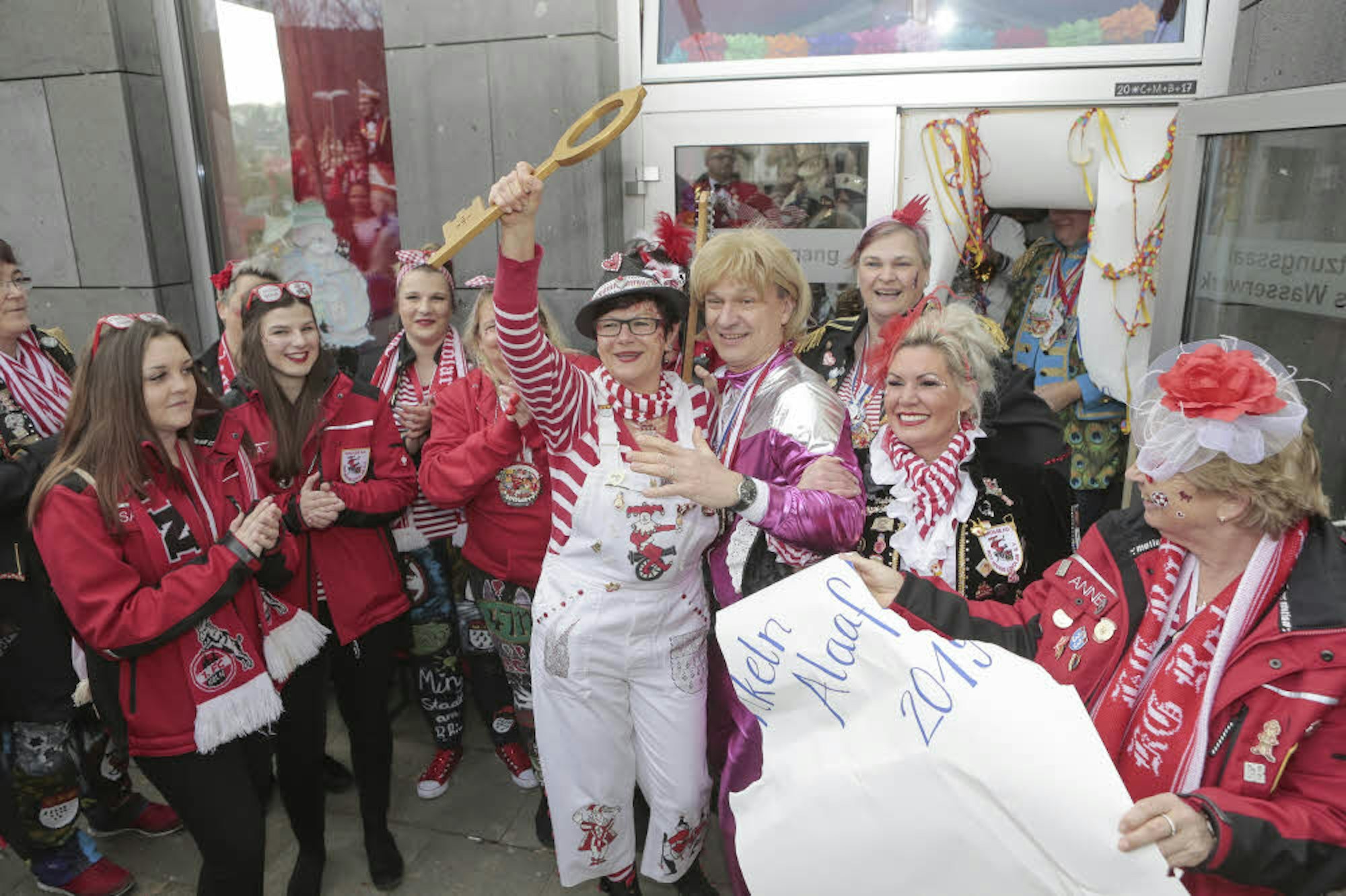Auch der Rockstar-Status konnte Bürgermeister Dr. Georg Ludwig nicht vor dem Zugriff der jecken Wiever schützen, die ihm den Schlüssel entrissen.