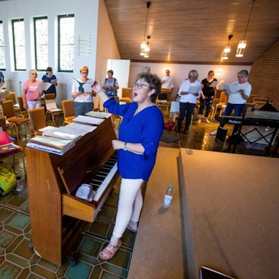 Die Feuerprobe für den Gottesdienst war „Ich lobe meinen Gott, der aus der Tiefe mich holt“. Die Konzert-Gemeinde sang, der Kantor mittendrin, nachdem er ein „Swing-Preludium“ mit Jazz-Anmutung als Vorspiel bot, mit einem Xylophon-Klang.