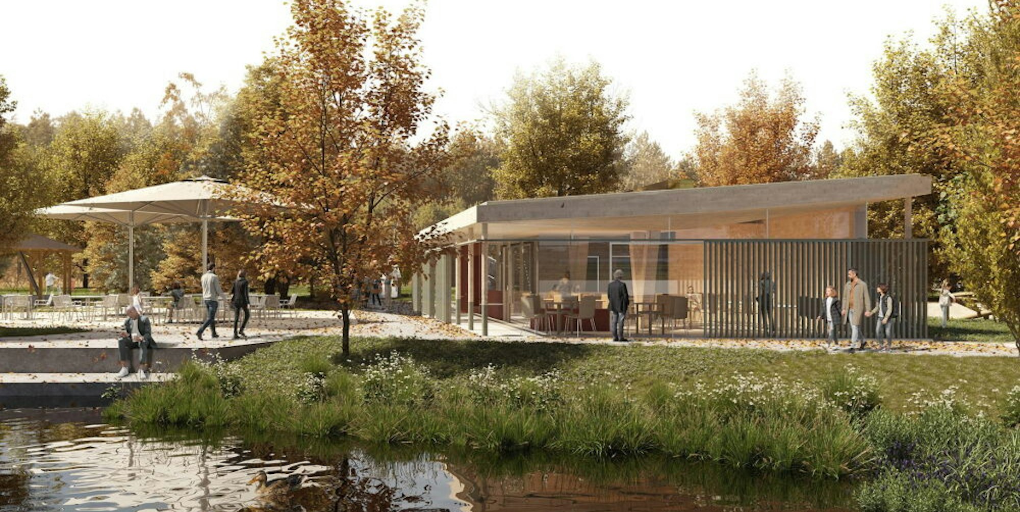 Das Gebäude soll mit Schiebewänden unterschiedlichen Wetterlagen und Nutzungen angepasst werden können. Architektin Sturm wies darauf hin, dass sich das Haus mit großen Fenstern zum See hin öffnet und weitgehend in Holzbauweise errichtet wird. Sie geht davon aus, dass das neue Café von der Deutschen Gesellschaft für Nachhaltiges Bauen als sozial und ökologisch wertvoll zertifiziert wird.