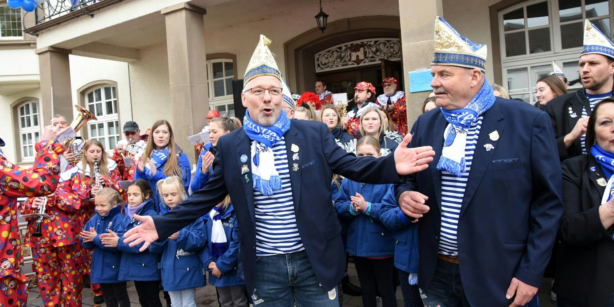 Von wegen Burghof. Erstmals haben die Bielsteiner Karnevalisten am Samstagmittag die fünfte Jahreszeit auf dem Rathausplatz in Wiehl eingeläutet – dem „schönsten Bielsteiner Ortsteil“, wie die Blau-Weißen mit einem Augenzwinkern betonten. Dabei war die Sessionseröffnung des Karnevalsvereins Bielstein (KV) mitten in der Stadt und nach zwei karnevalslosen Jahren mit allerlei Premieren gespickt.