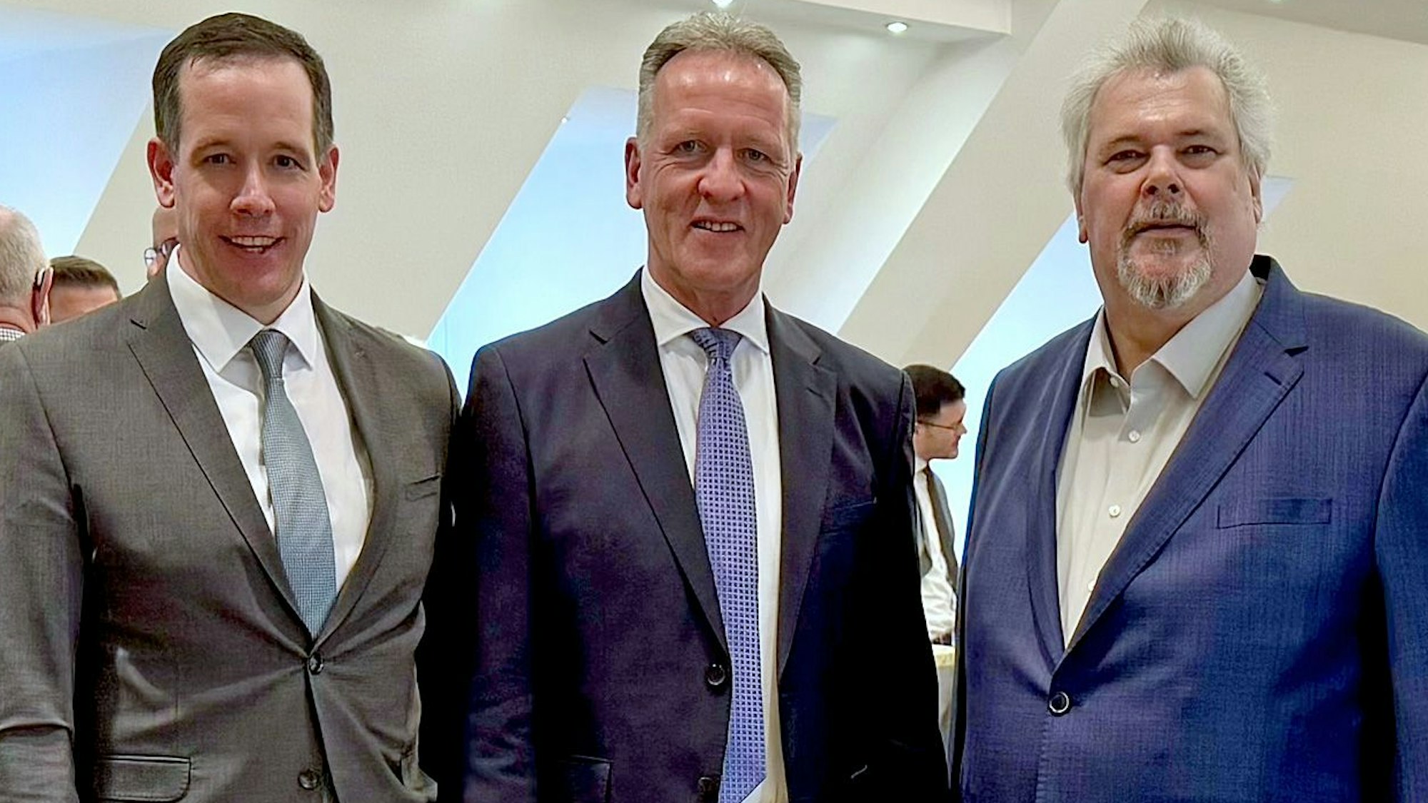 Stabwechsel (v.r.): Thomas Knura wurde von Volksbankchef Ingo Stockhausen verabschiedet, sein Nachfolger ist Nils Hühn.