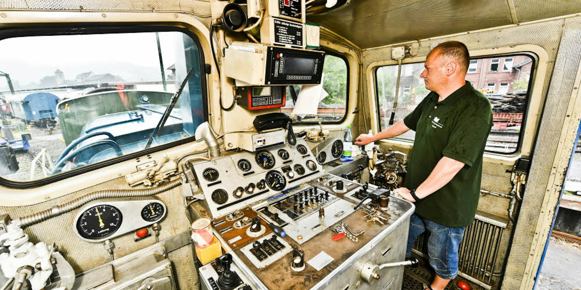 Andreas Voll hatte den Wiehltalbahnern für die Ausfahrt als Ersatz für die Lok Waldbröl seine Diesellok zur Verfügung gestellt. Fotos: Nickel
