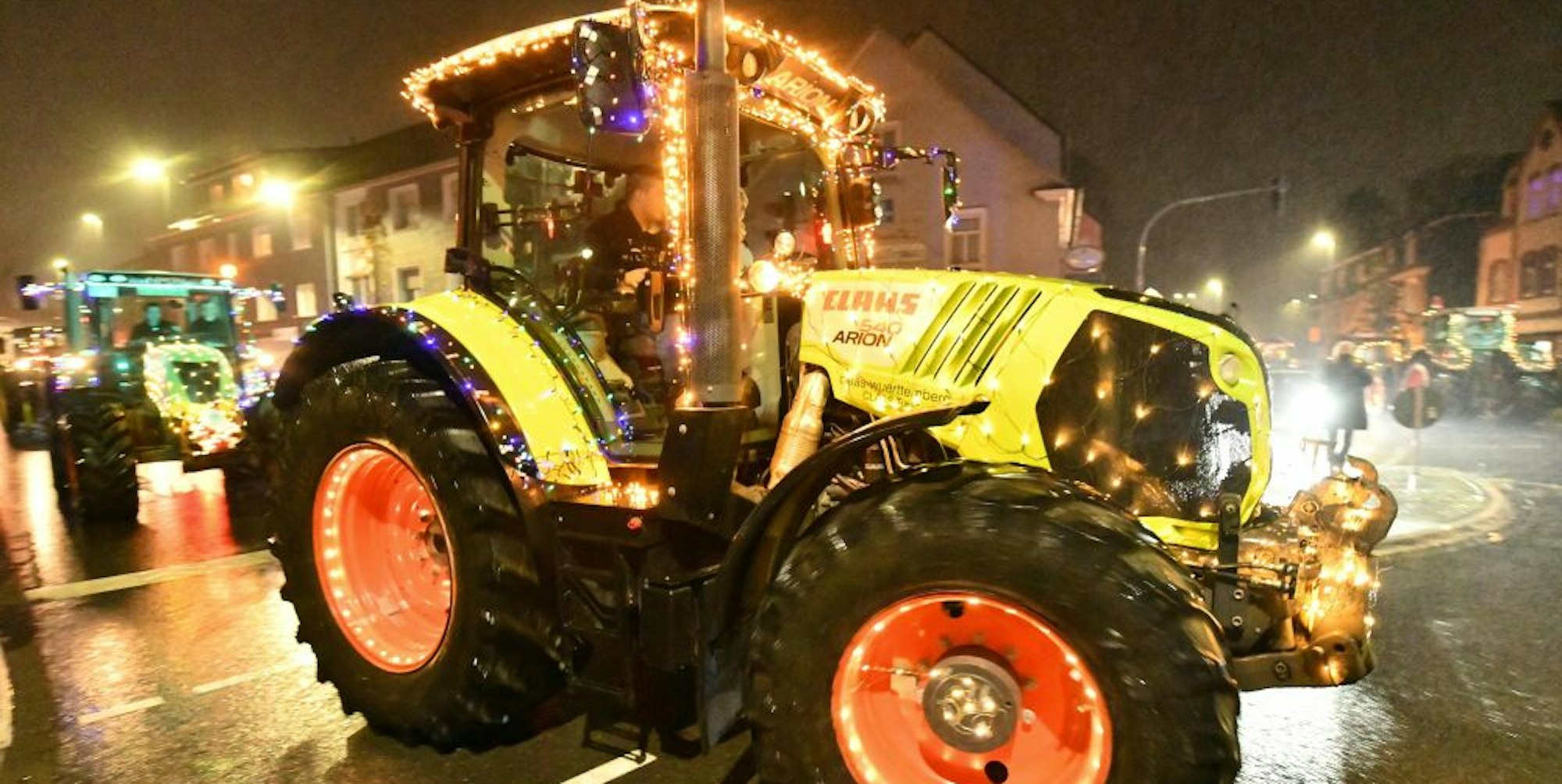 Lichterzug mit 80 TraktorenBlinkender Treckerkorso rollt durch Wipperfürth