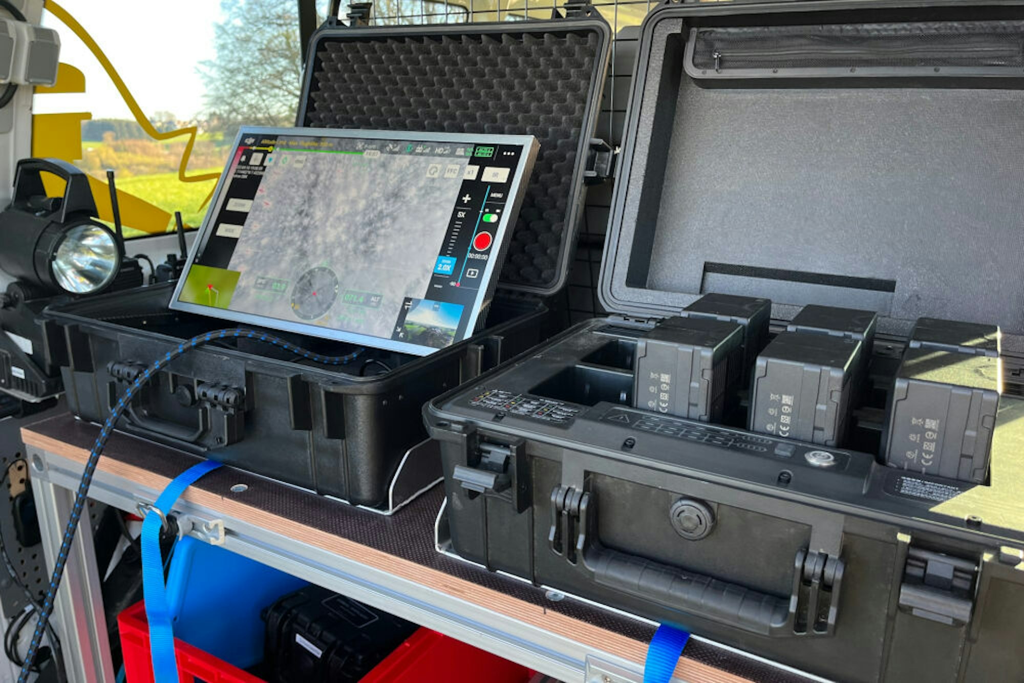 Wegen der räumlichen Ausdehnung der Einsatzlage und weiterer unklarer Meldungen wurde die Drohnenstaffel des Oberbergischen Kreises hinzugezogen. Die besteht aus Kräften der Feuerwehr Gummersbach- Windhagen und des Löschzugs Engelskirchen. Sie kann mithilfe der Drohne, die unter anderem mit einer Wärmebildkamera ausgestattet ist, wertvolle Informationen liefern.