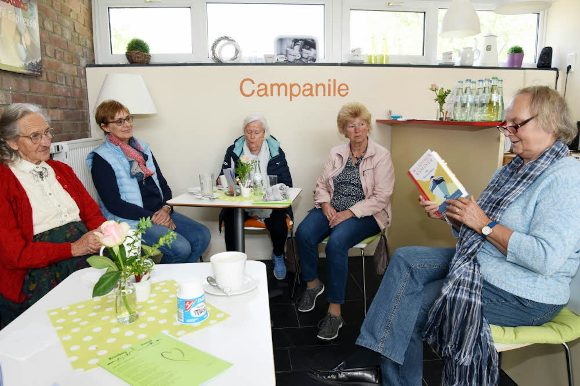 In unregelmäßigen Abständen steht der Café-Nachmittag unter einem besonderen Motto. Mal wird es weihnachtlich, mal steht der Muttertag im Vordergrund oder das Campanile verwandelt sich in ein Wiener Kaffeehaus inklusive Sachertorte, Apfelstrudel und Geschichten aus der österreichischen Hauptstadt. Am letzten Dienstag eines Monats dreht sich an der Alten Bahnhofstraße immer alles um Literatur, Barbara Löffler schaut vorbei.