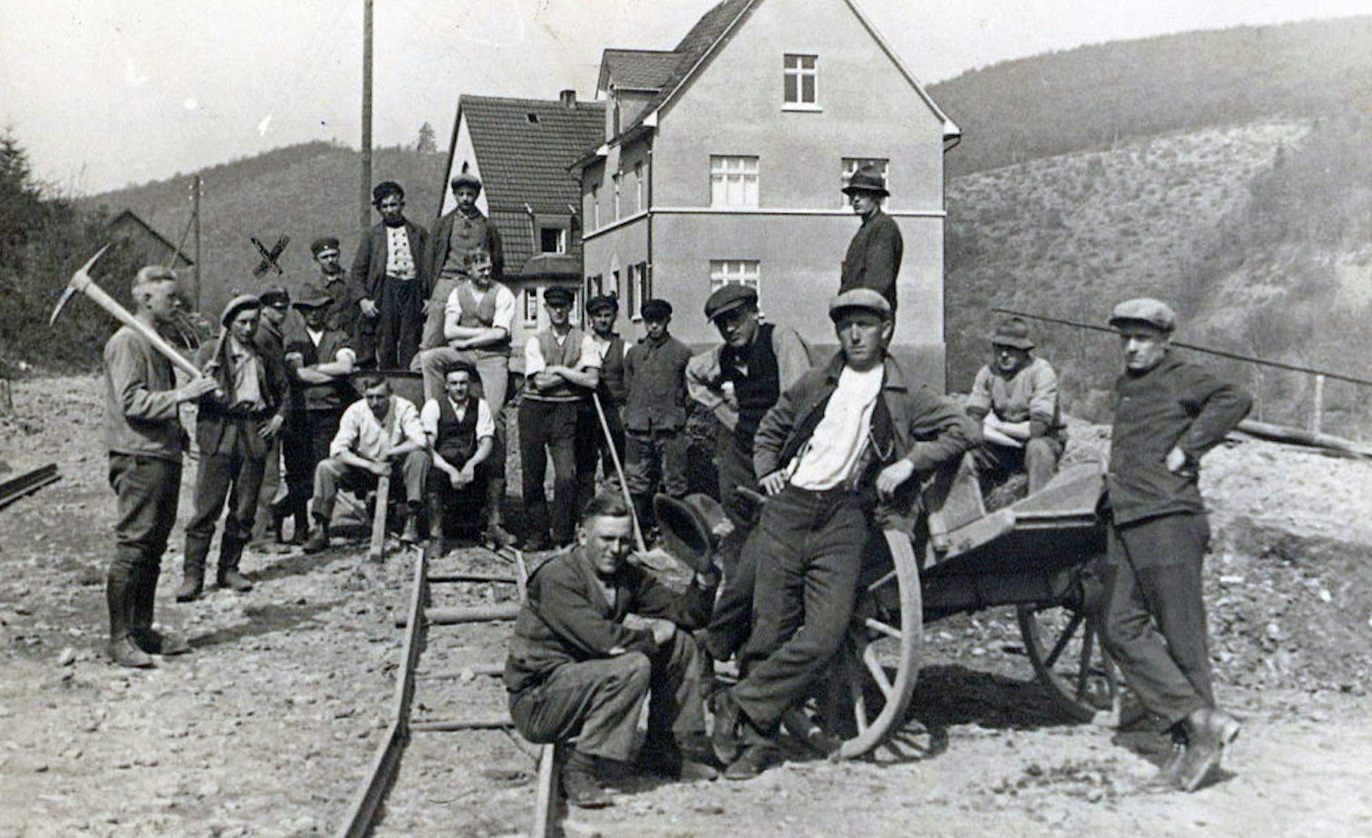 Das historische Foto zeigt noch nicht uniformierte Männer beim Arbeitseinsatz in Siegen.