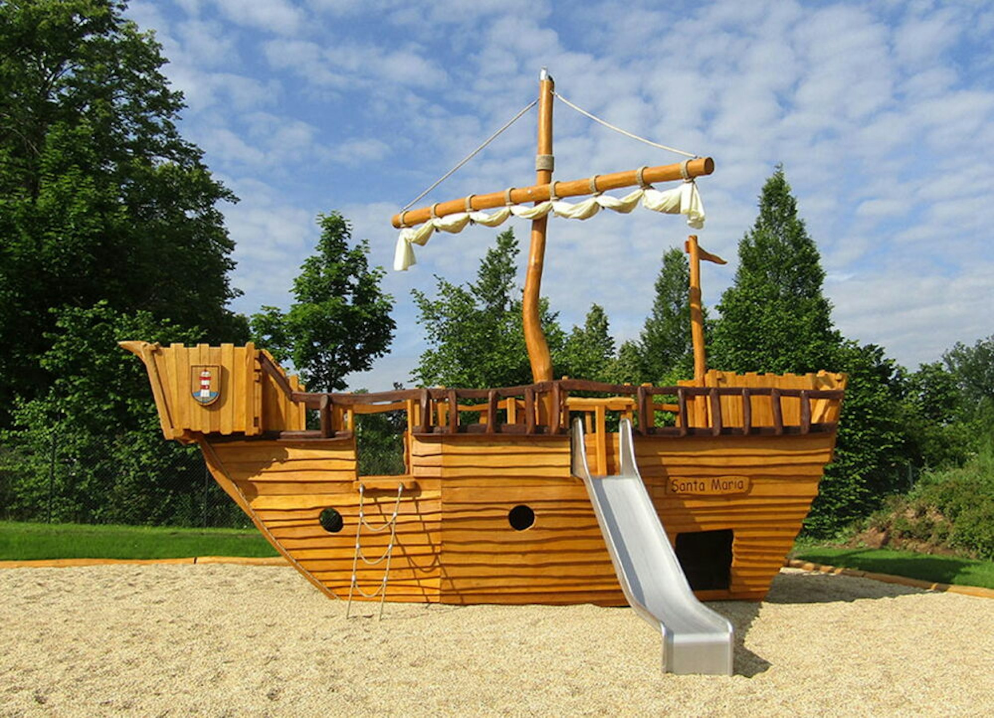 Das Spielschiff bietet mit zwei Decks Klettermöglichkeiten, es besitzt ein Steuerrad und kann eine Rutsche aufnehmen. Es soll im hinteren Bereich des Parks aufgebaut werden.
