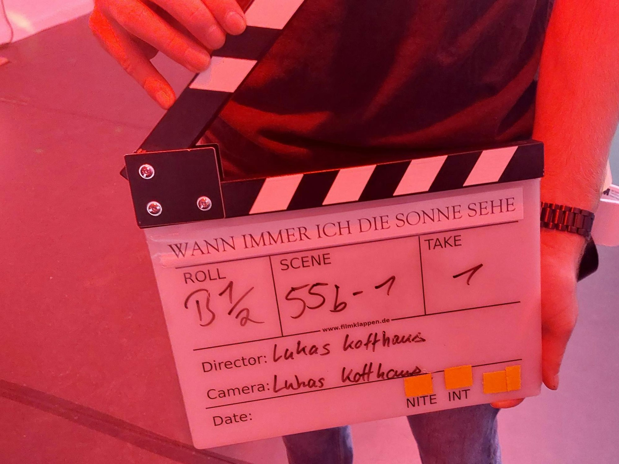 Aber eben so intelligent, dass Dolly perfekt auf den Schienen läuft. Die bestehen aus alten Abwasserrohren. Das Catering übernimmt Mama Simone Kotthaus, sie kümmert sich auch um Requisiten, stimmt sich, wenn nötig, mit dem Ordnungsamt oder der Polizei ab. Und ganz viel macht eben Lukas Kotthaus. Er ist Regisseur, Drehbuchautor, Kameramann und Cutter in einer Person. Hauptdarstellerin Emelie Pütz ist Kotthaus auf Instagram gefolgt und als sie gesehen hat, dass er Schauspieler sucht, hat sie ihn einfach angerufen. Ein paar Gespräche später hatte sie die Rolle. Anna Saphira Ronsdorf ist eine langjährige Freundin von Emelie, so simpel ist das manchmal.
