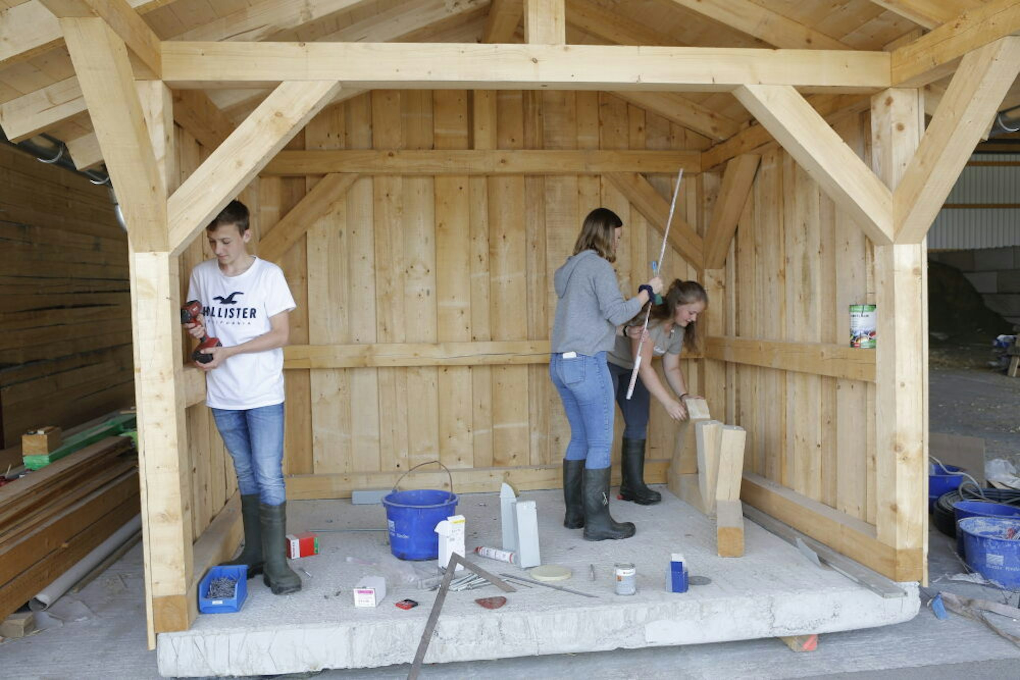 - Die Geschwister Lisa, Lutz und Anna Raffelsieper haben die Zeit genutzt, um einen mobilen Hühnerstall zu bauen.