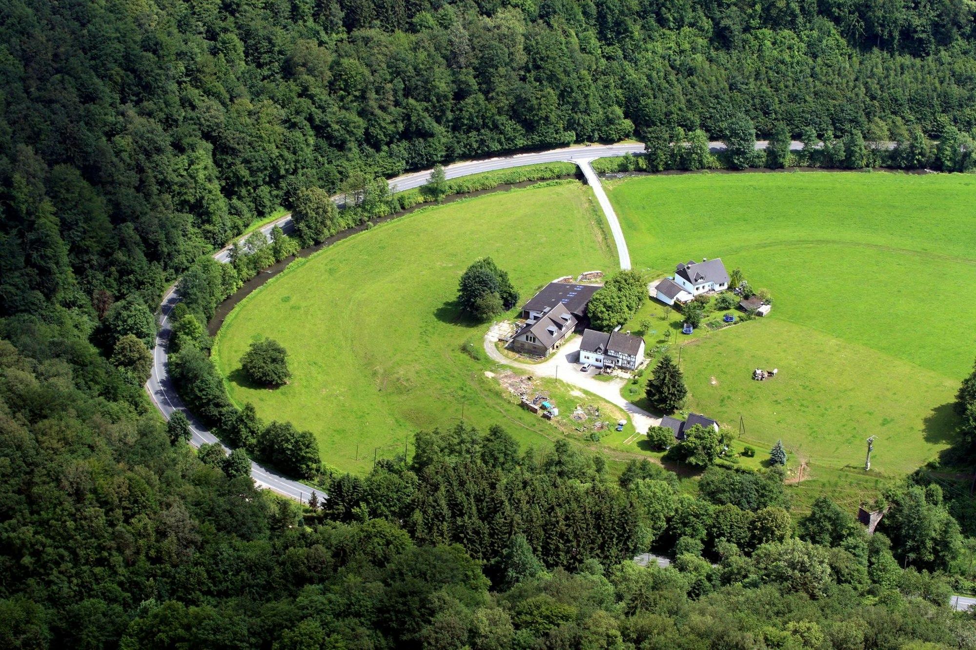Die Bilsteiner Sülzschleife. Unten rechts: der Brückenrest.