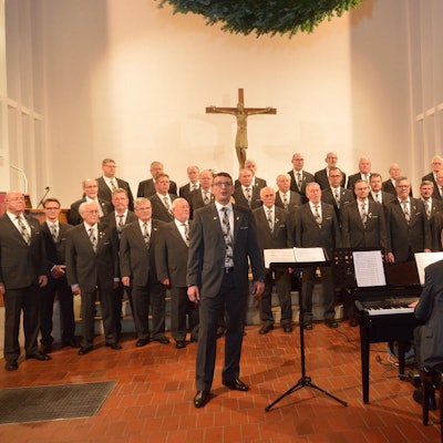 Chorleiter Rolf Pohle probt mit den Sängern.