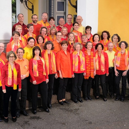 Ganz links beim 1. Tenor sitzt Thomas Knoob. Er liest die Noten ausnahmsweise vom Handy ab, denn die Noten für „Soon Ah will be Done“ hat er vergessen. Der Chor probt das Lied zum ersten Mal. Knoob ist über einen Schulkollegen 1994 zum Chor gekommen. Während der probefreien Zeit traf er sich mit anderen Sängern online, um zu quatschen und ein bisschen zu singen, sagt er.
