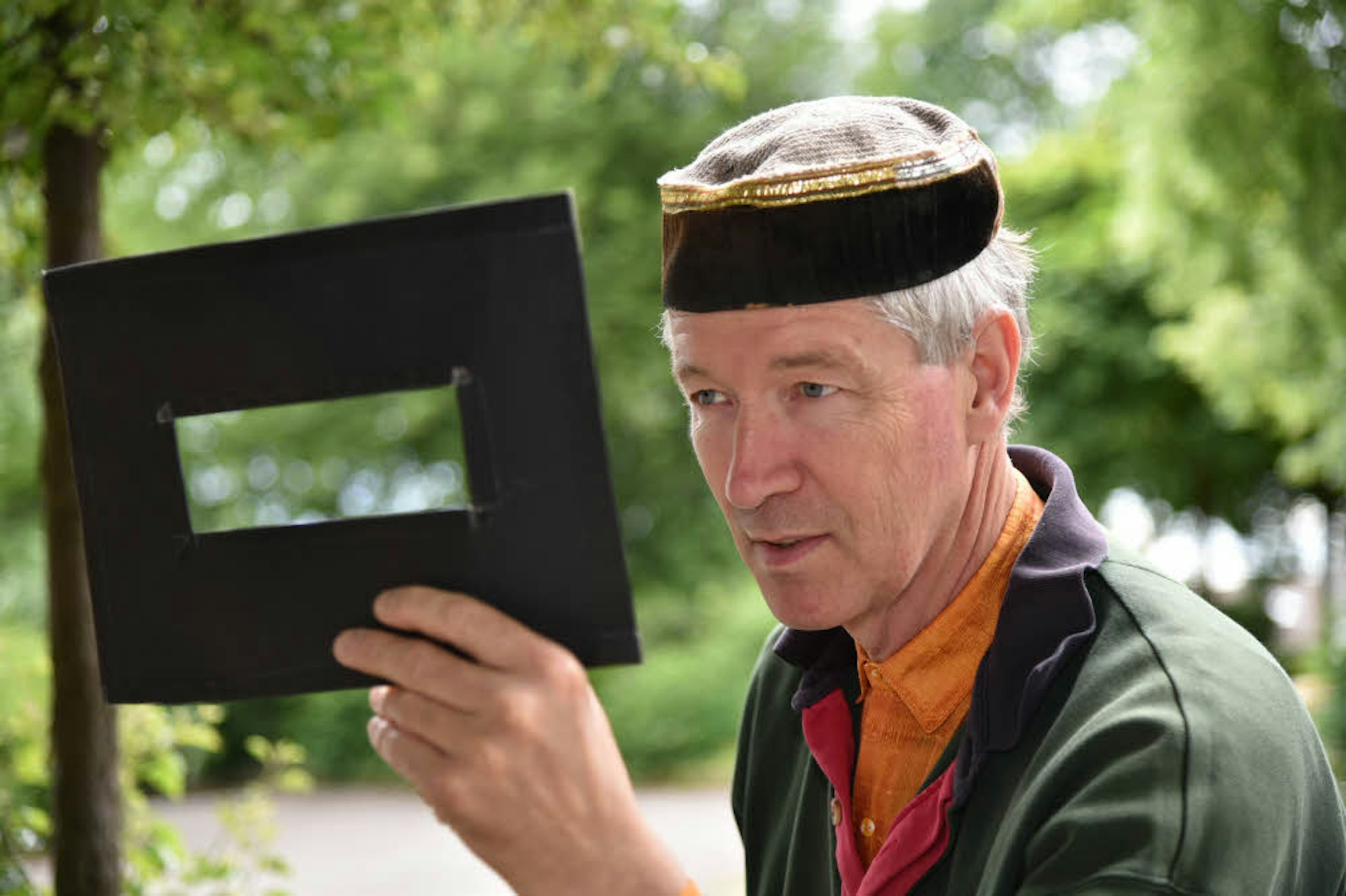 Durch ein Passepartout nimmt Markus Bollen Maß für sein künftiges Motiv. Lohnt es sich?