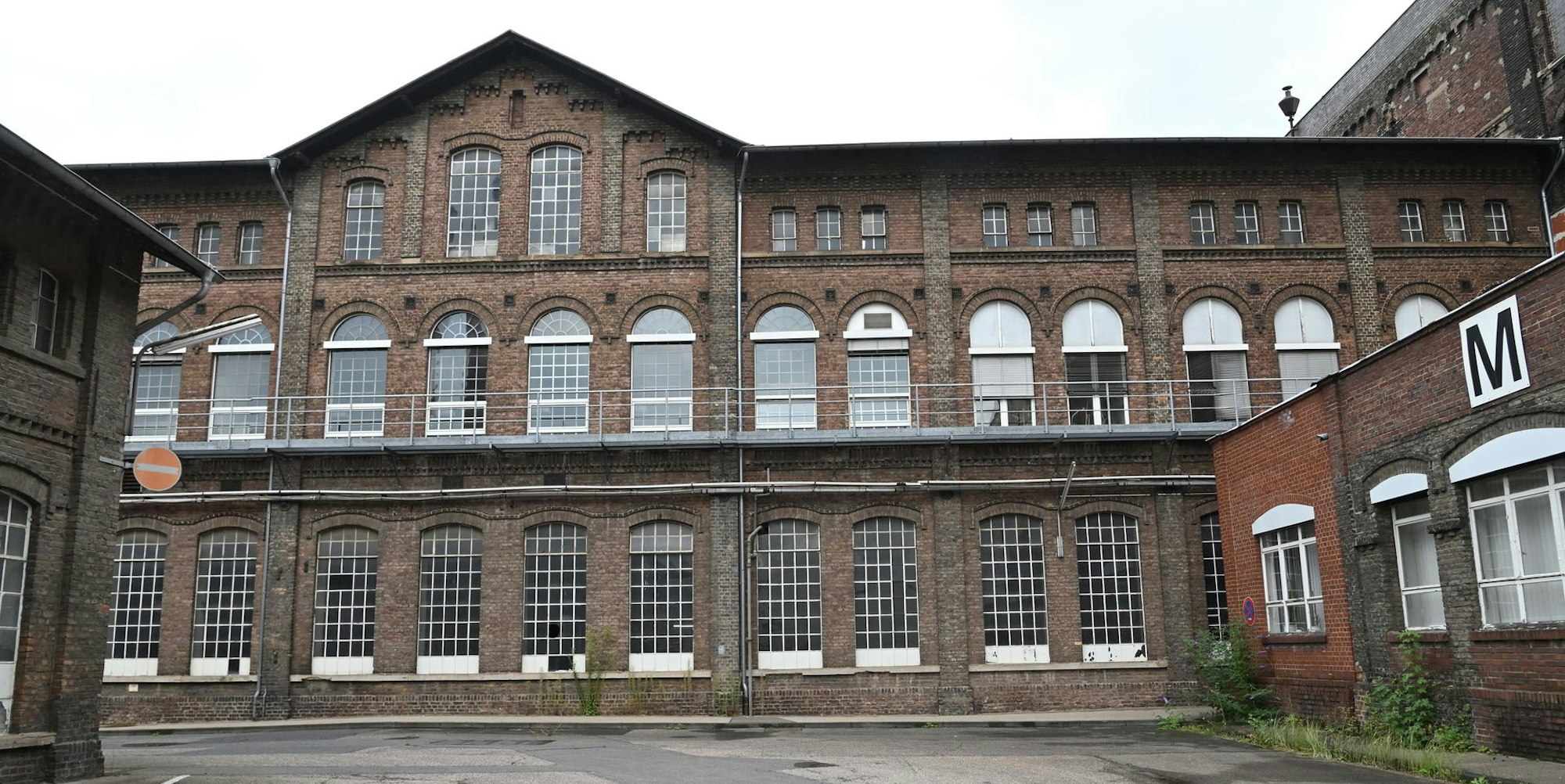 In der Fantasie der Planer wird diese Werksstraße die neue Verkehrsachse durch ein Wohn- und Gewerbegebiet. Nicht nur die Fassaden, sondern auch die Leitungen bleiben erhalten.
