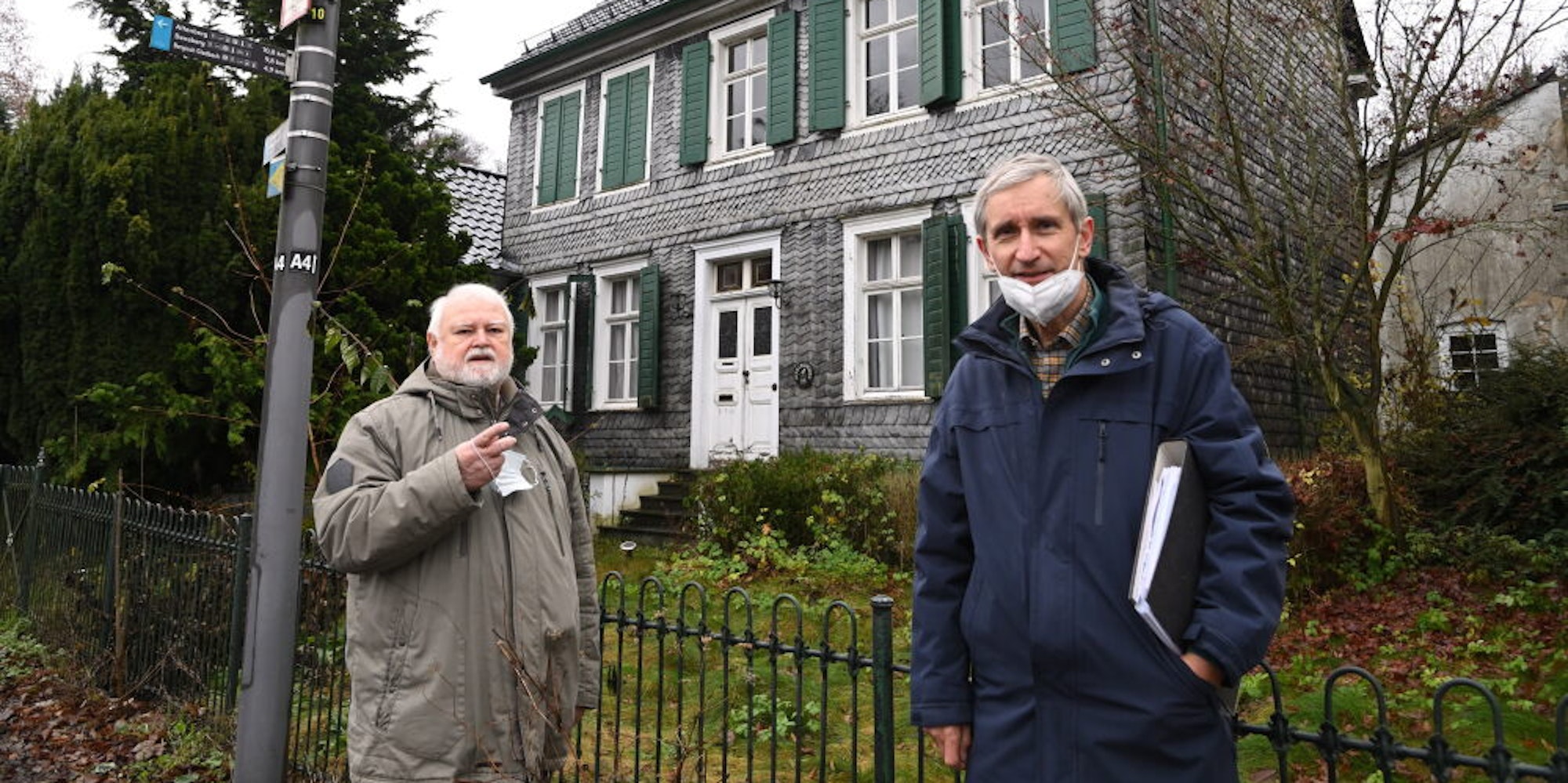 Bergisch Gladbach – Der Weg zum Haus ist zugewuchert, das Holz der Haustür angefault, Schlagläden hängen schief in den Angeln und Schieferplatten der Fassade sind gebrochen. Nur die Dachpfannen scheinen makellos. Trotz dieser unübersehbaren Zeichen des Verfalls lässt sich die ursprüngliche Eleganz des Gebäudes schräg gegenüber der Malteser-Komturei in Herrenstrunden noch erahnen.