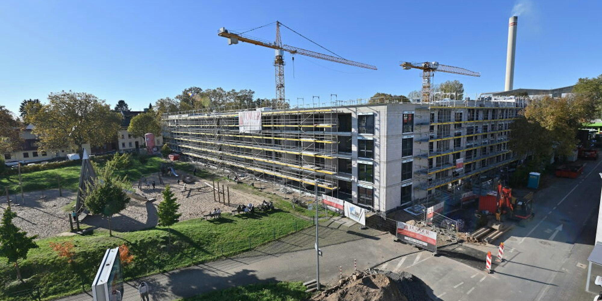 Zurzeit drehen sich die Baukräne über der Stadt, hier das Neubaugebiet auf dem Gelände der ehemaligen Sanitärfirma Steinbüchel in der Stadtmitte. Hier entsteht Geschosswohnungsbau.