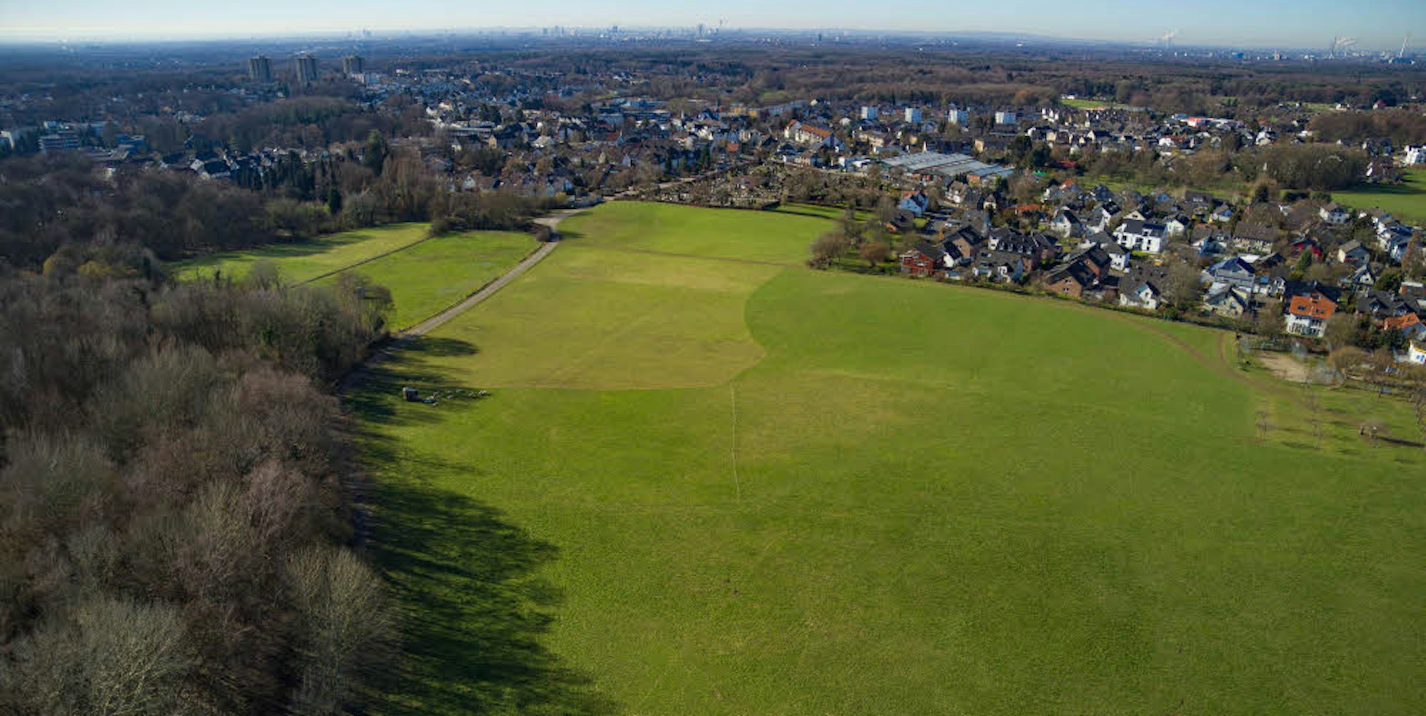 Aber vor allem: „Das ist die Klimaanlage unserer Stadt und die schaltet man nicht einfach ab“, weist Eßer daraufhin, dass das Gelände als Kaltluft-Entstehungsgebiet für Gladbacher und Kölner Stadtteile dient. Im neuen Flächennutzungsplan sind sieben des elf Hektar großen Areals als potenzielles Bauland vorgesehen. Das sind etwa zehn Fußballfelder. Eßer hat es genau vor Augen, wie im Zeitraffer sieht er alles vor sich: Nur in der Mitte soll eine Schneise als Aussichtsplattform auf Köln unbebaut bleiben.