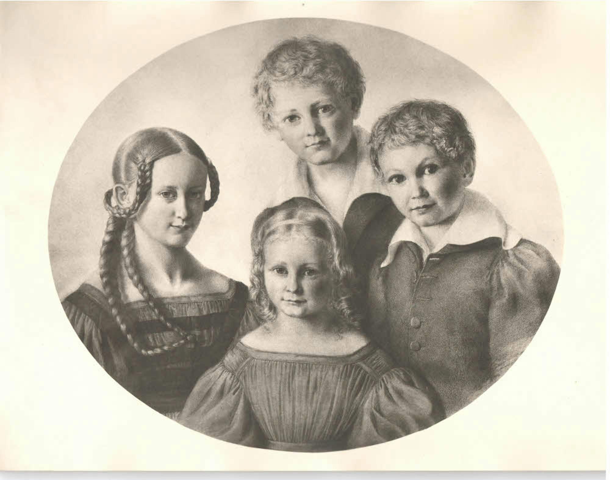 Die vier Kinder von Johann Wilhelm Zanders und seiner Frau Julie. Der älteste Sohn Carl Richard übernahm später die Schnabelsmühle.