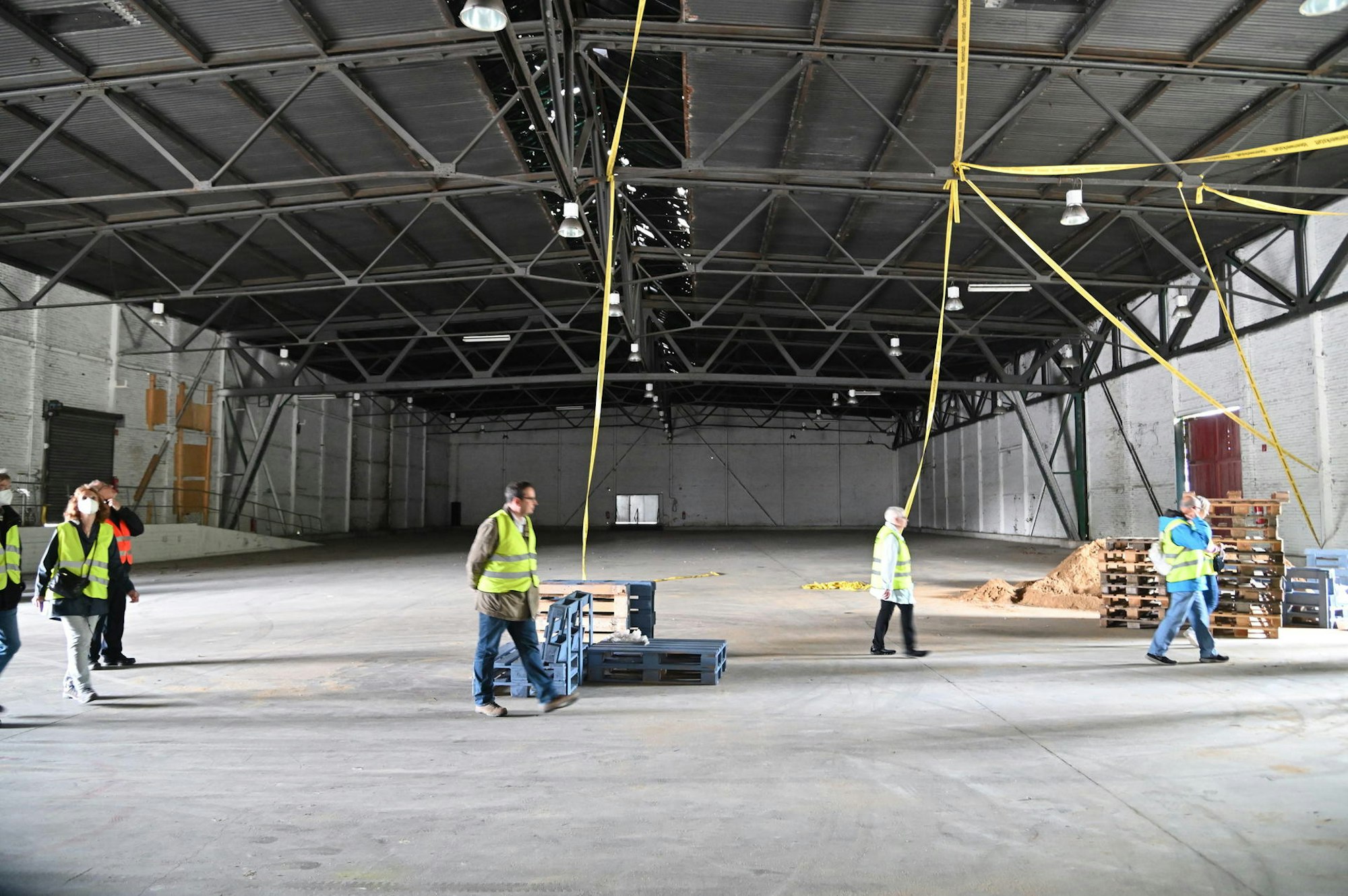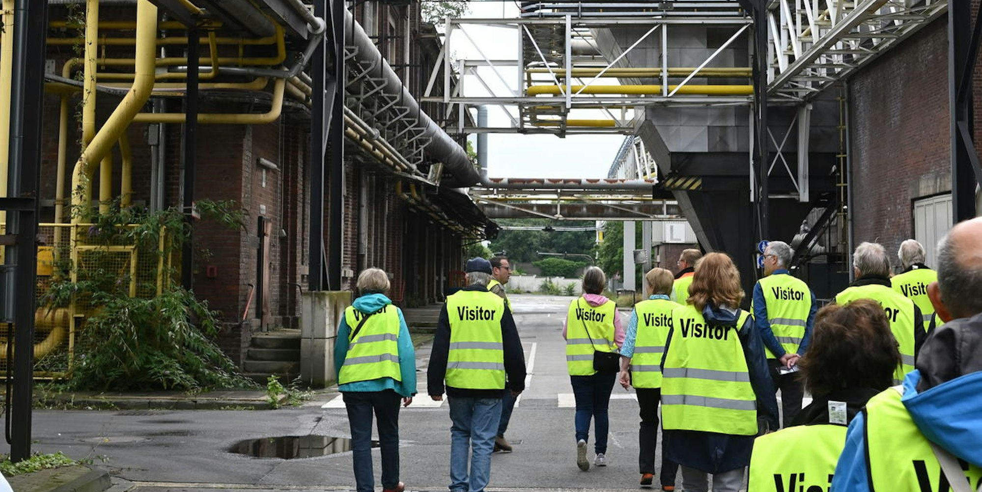 Bergisch Gladbach – Ab und zu rumst es. Ein einsamer Gabelstaplerfahrer befördert Rohre in einen Container, einzeln, Stück für Stück. Ansonsten herrscht gespenstische Stille zwischen den Fabrikgebäuden auf dem riesigen Zanders-Gelände. Die zwölfköpfige Besuchergruppe mit ihren gelben Sicherheitswesten wirkt wie ein Schauspielerensemble beim Showdown in einem Spätwestern aus dem Industriemilieu.