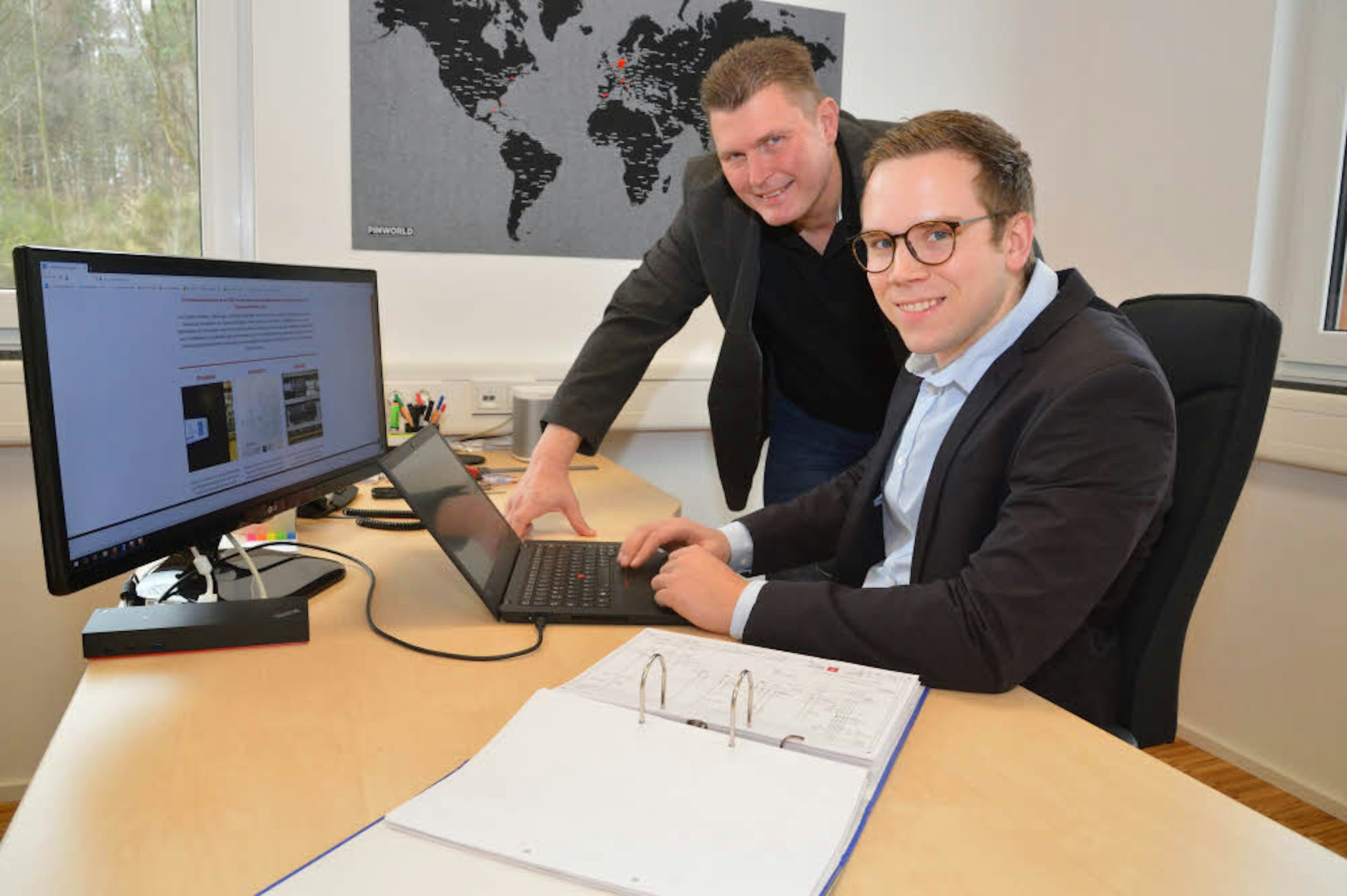 Michael Carrell (l.) und Daniel Schröter haben ihren Elektrotechnik-Betrieb von Kürten ins Gewerbeareal Obereschbach verlagert.
